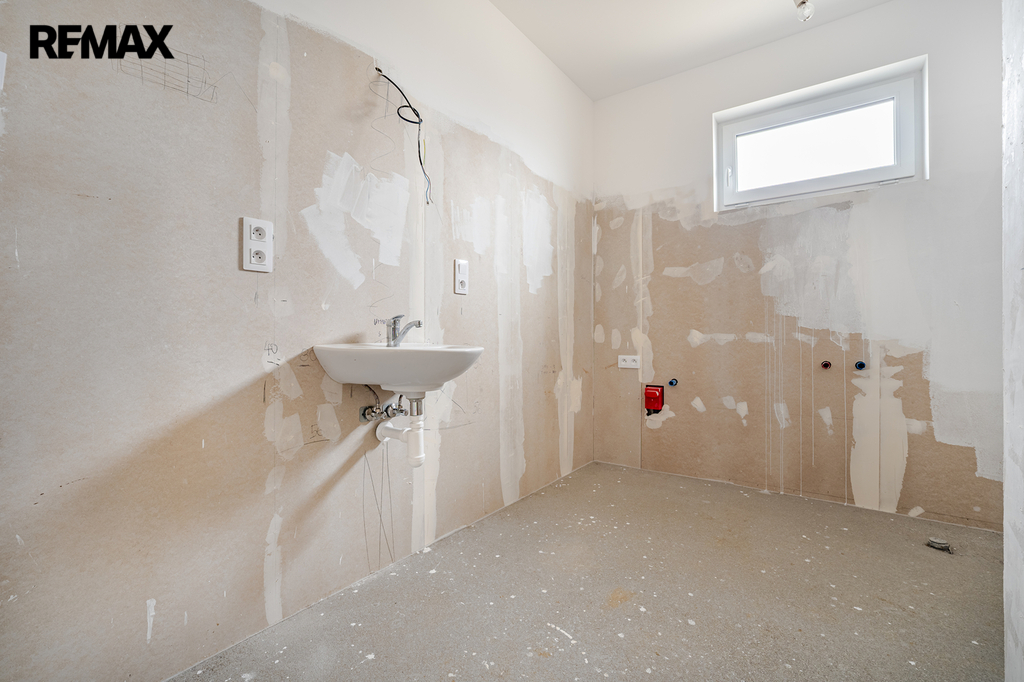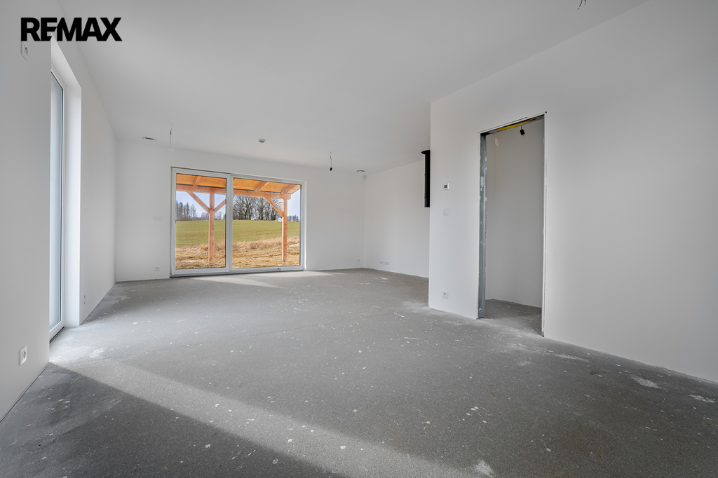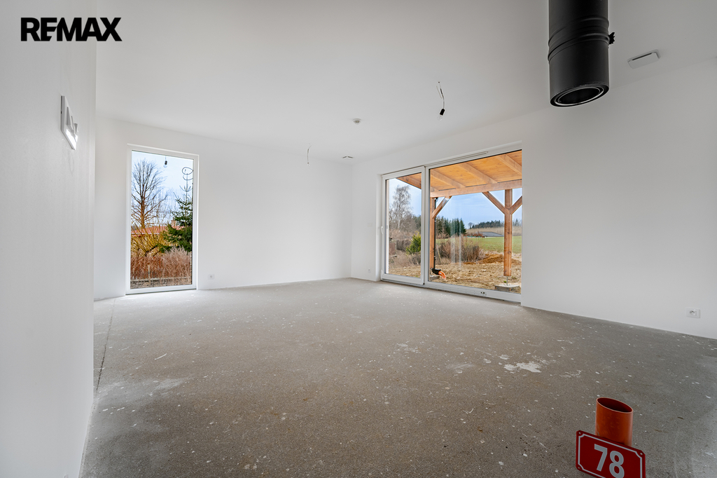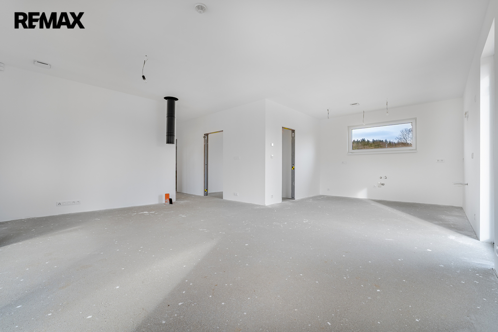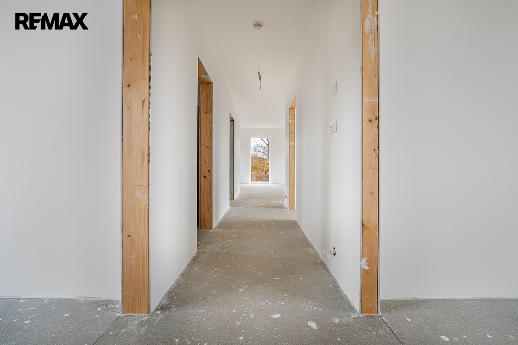 Tato právě zkolaudovaná dřevostavba s přiděleným číslem popisným je připravena k dokončení dle vlastního vkusu. Dům nabízí obytnou plochu 91,1 m², garáž o velikosti 25,9 m², sklad 16 m², půdní prostor 33 m² a zastřešenou terasu. Celková plocha pozemku činí 1 212 m².