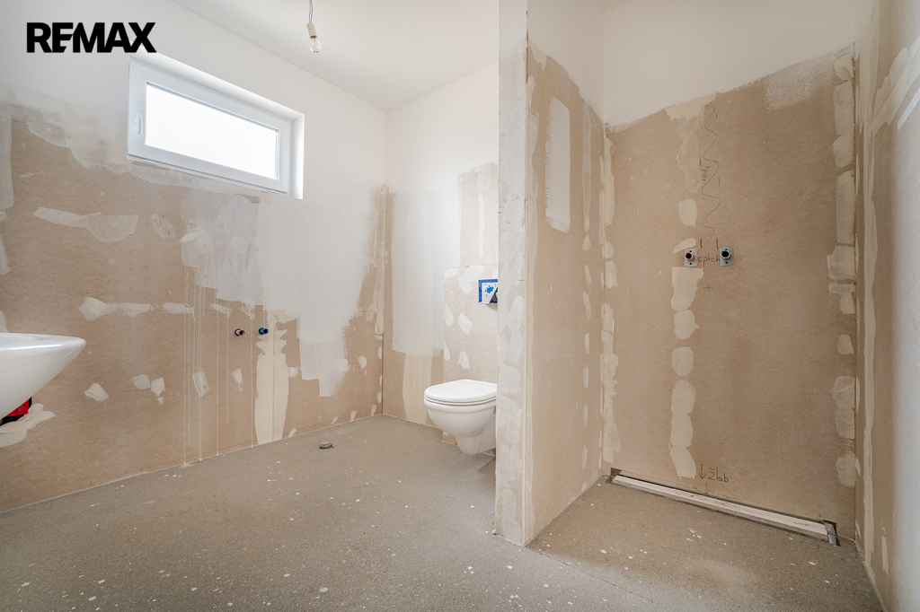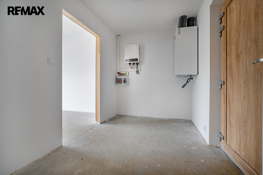Zbývá dokončit podlahové krytiny, obklady, dlažby, vnitřní dveře, finální fasádu (v ceně) a venkovní úpravy (např. trávník, chodníky). Dokončení může dle dohody zajistit stavební firma DŘEVODOMY s.r.o. na míru podle požadavků kupujícího.