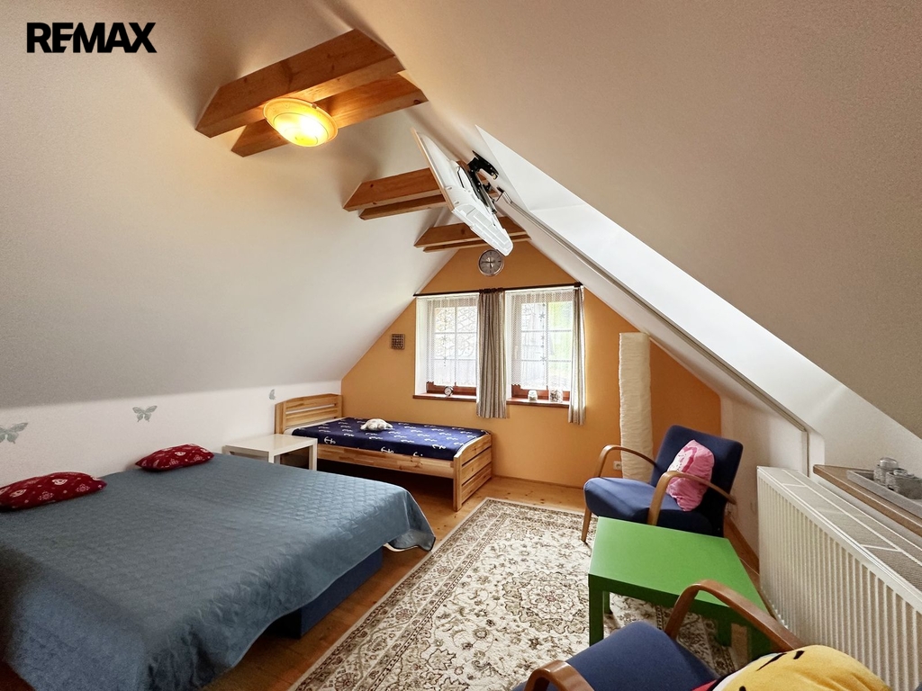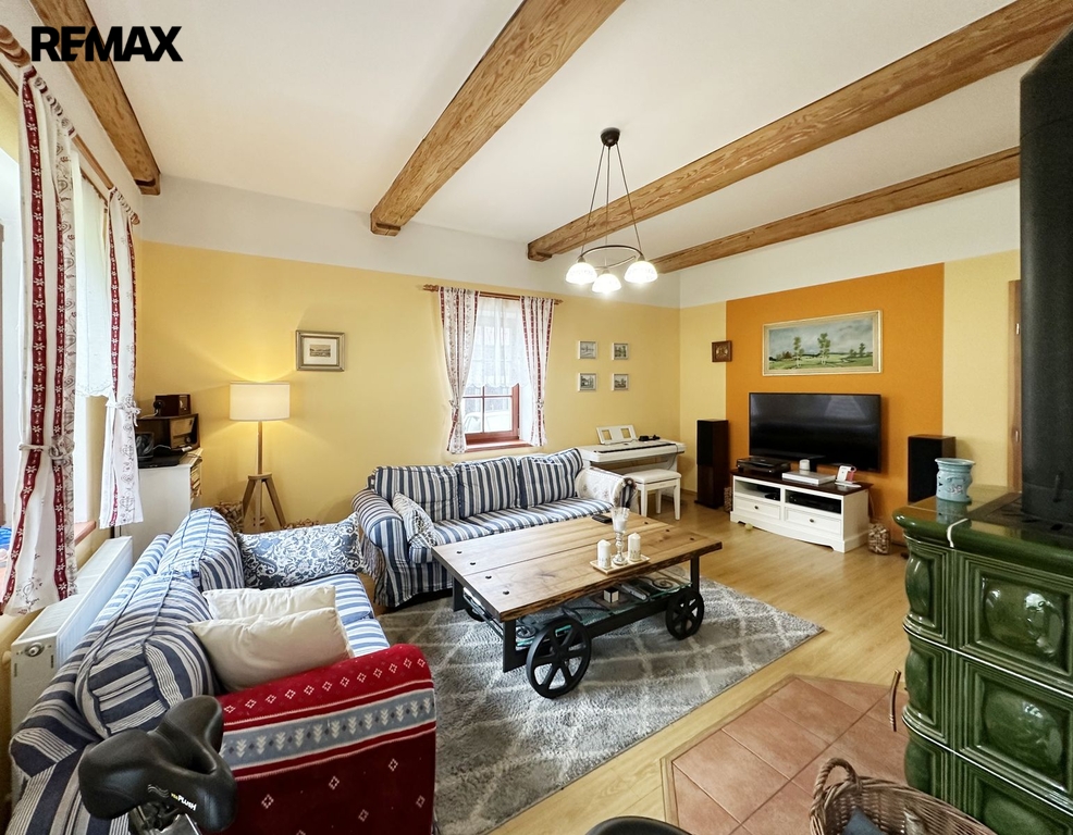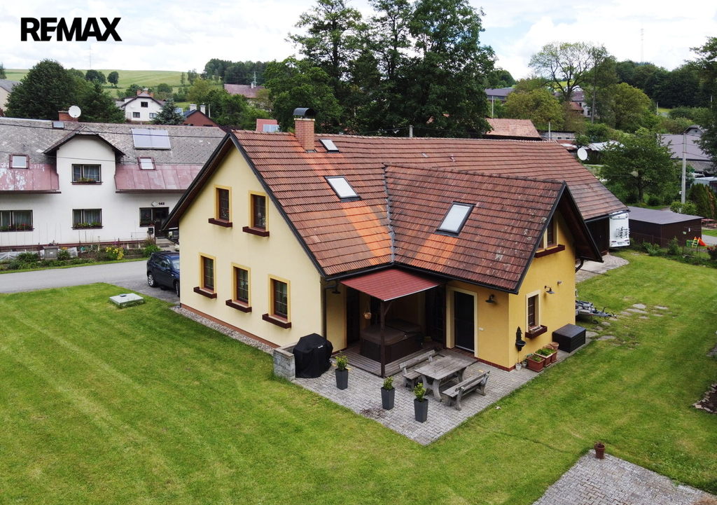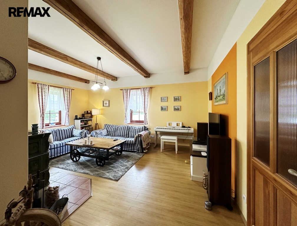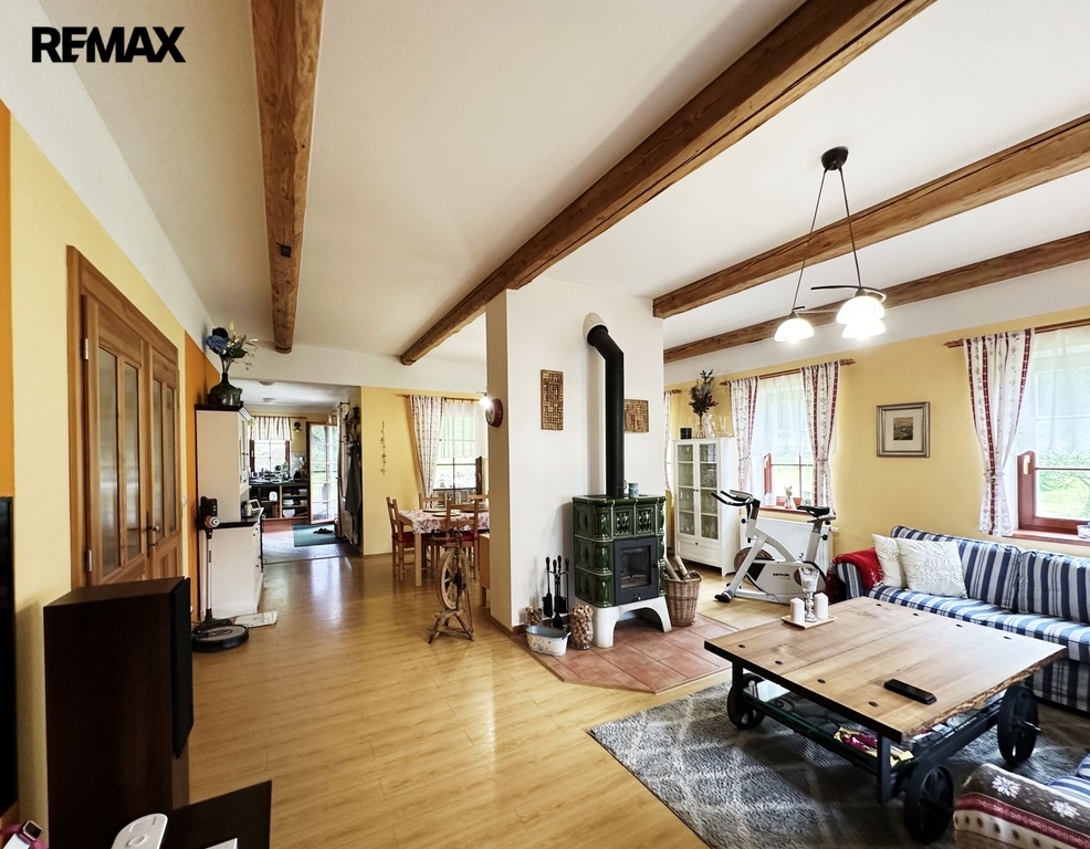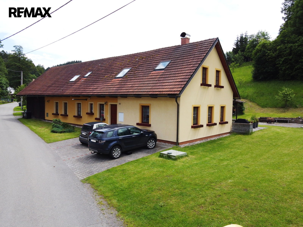 Stavení je o dispozici 8 + 1, dvě koupelny, technické místnosti, sklep a garáž. Dále na pozemku stodola sloužící ke skladování.