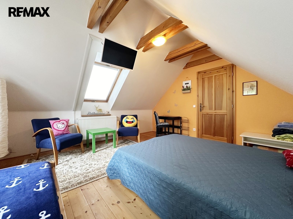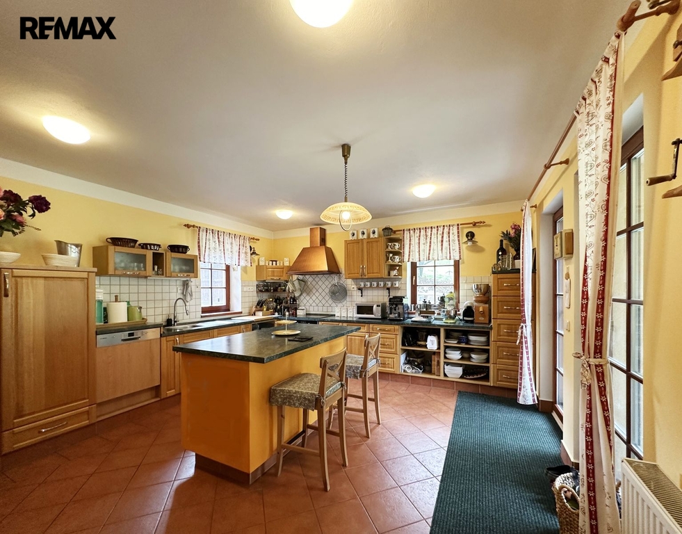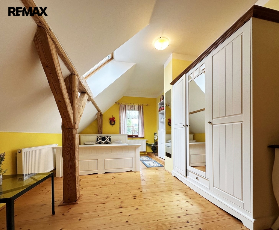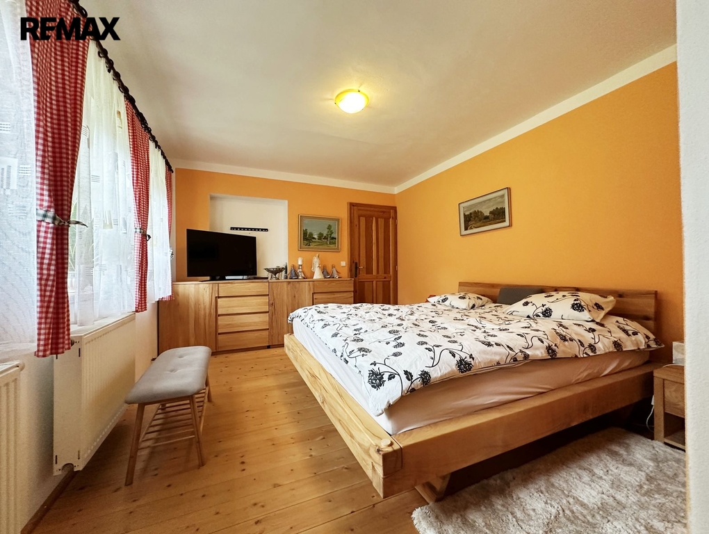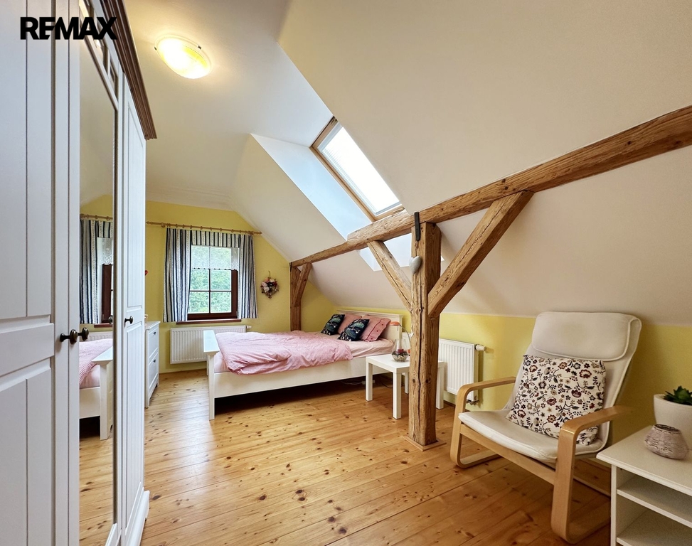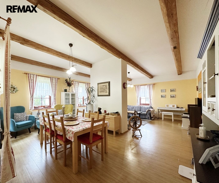 Stavení je o dispozici 8 + 1, dvě koupelny, technické místnosti, sklep a garáž. Dále na pozemku stodola sloužící ke skladování.