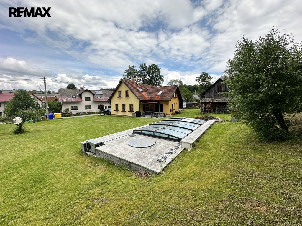 Tento dům nabízí ideální kombinaci klidného venkovského života a moderního komfortu - krytý bazén, vířivka, sauna a solárium.
