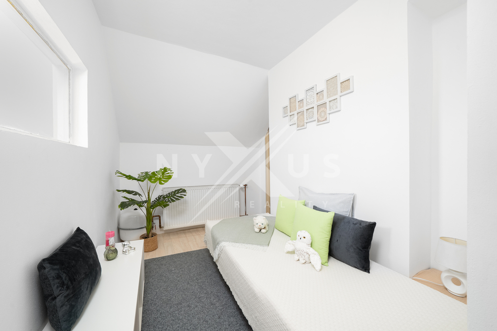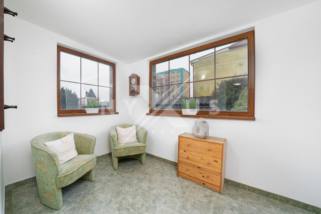 Dům je podsklepený a poskytuje praktické zázemí pro každodenní fungování domácnosti. Horní patro ukrývá dva půdní prostory, které otevírají zajímavou možnost rozšíření obytné plochy.