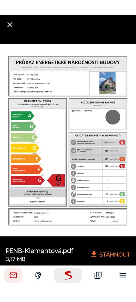 - Energetická náročnost budovy: G - Mimořádně nehospodárná