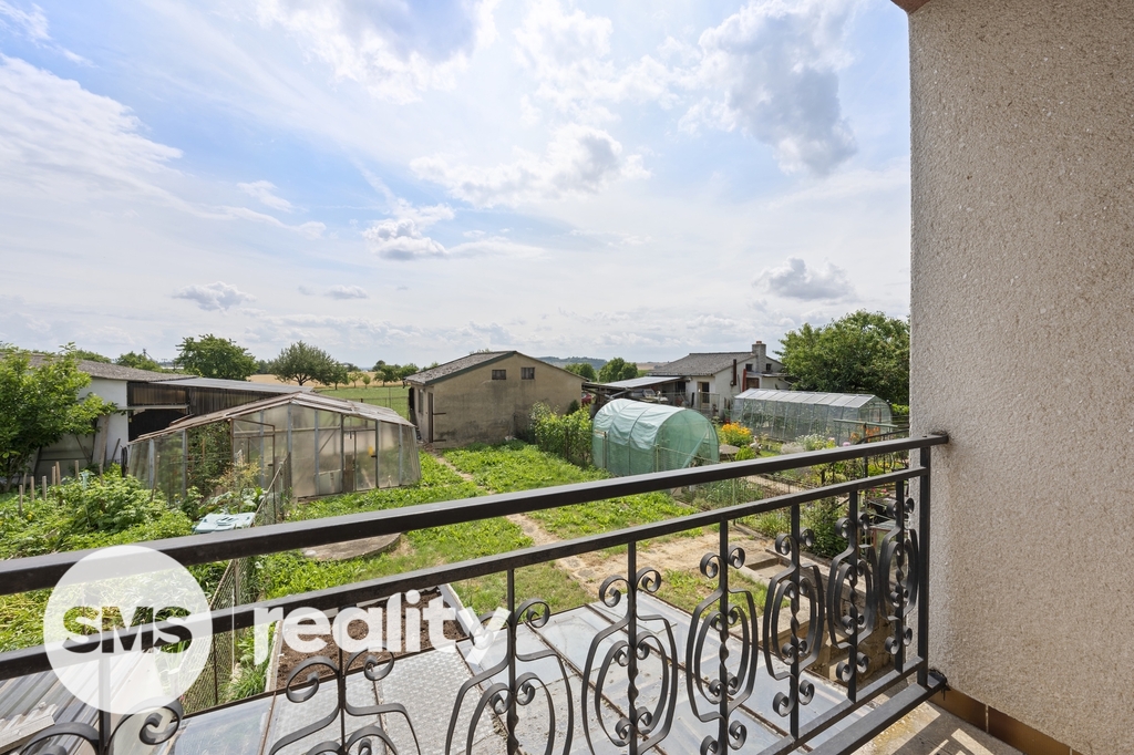 Přízemí: světlý obývací pokoj s jídelním koutem, kuchyně s novou moderní linkou (vestavná myčka a sporák), předsíň, prostorná chodba, samostatná toaleta, spíž a dva balkony