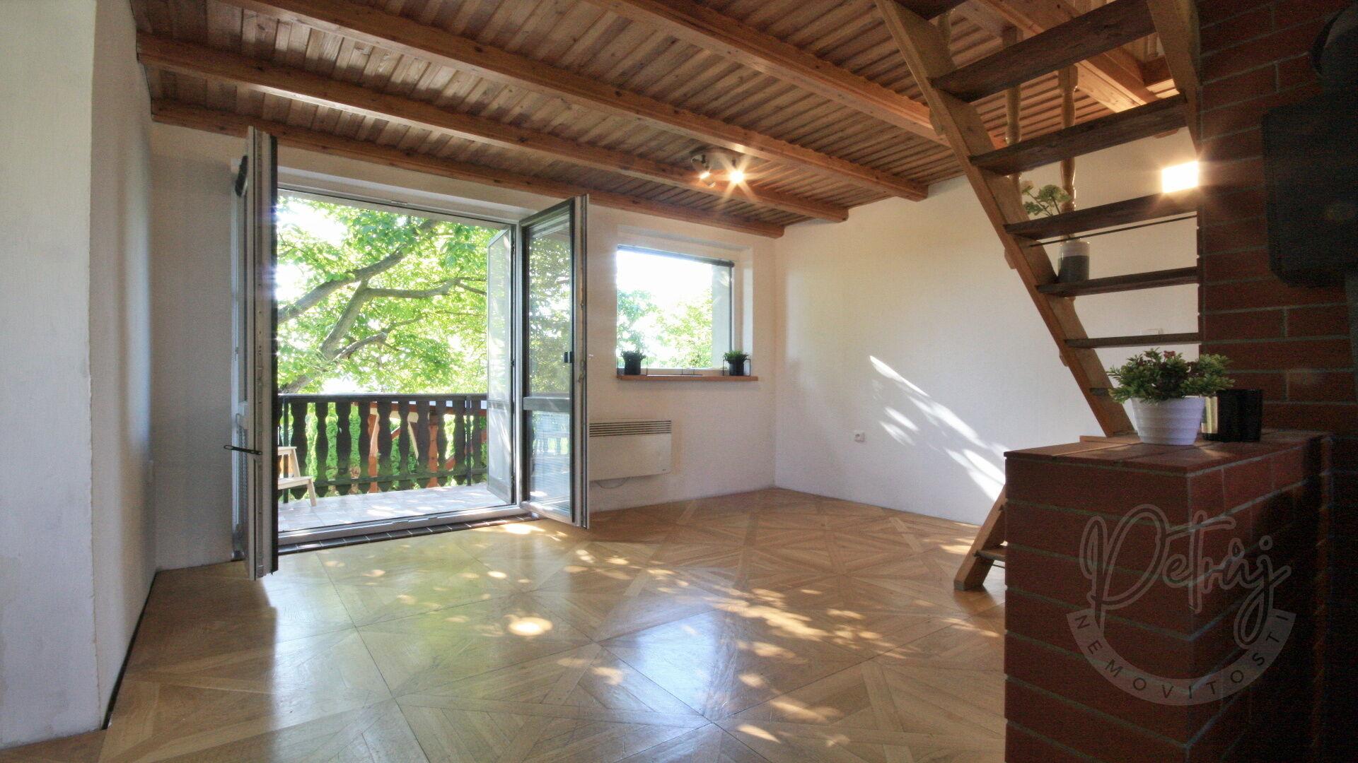 první patře, ze které se po dřevěných schůdcích dostanete do podkroví. V
