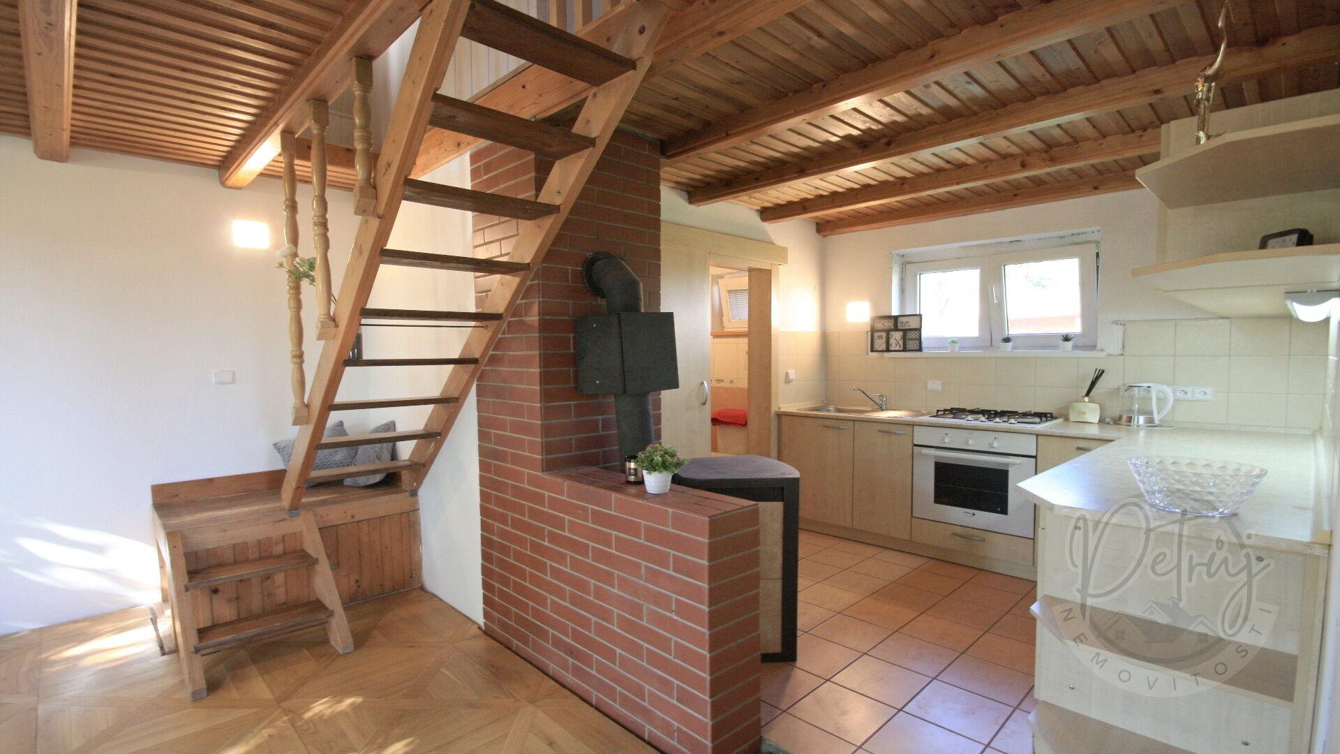 Disponuje obývacím pokojem, kuchyňským koutem s kamny a koupelnou v