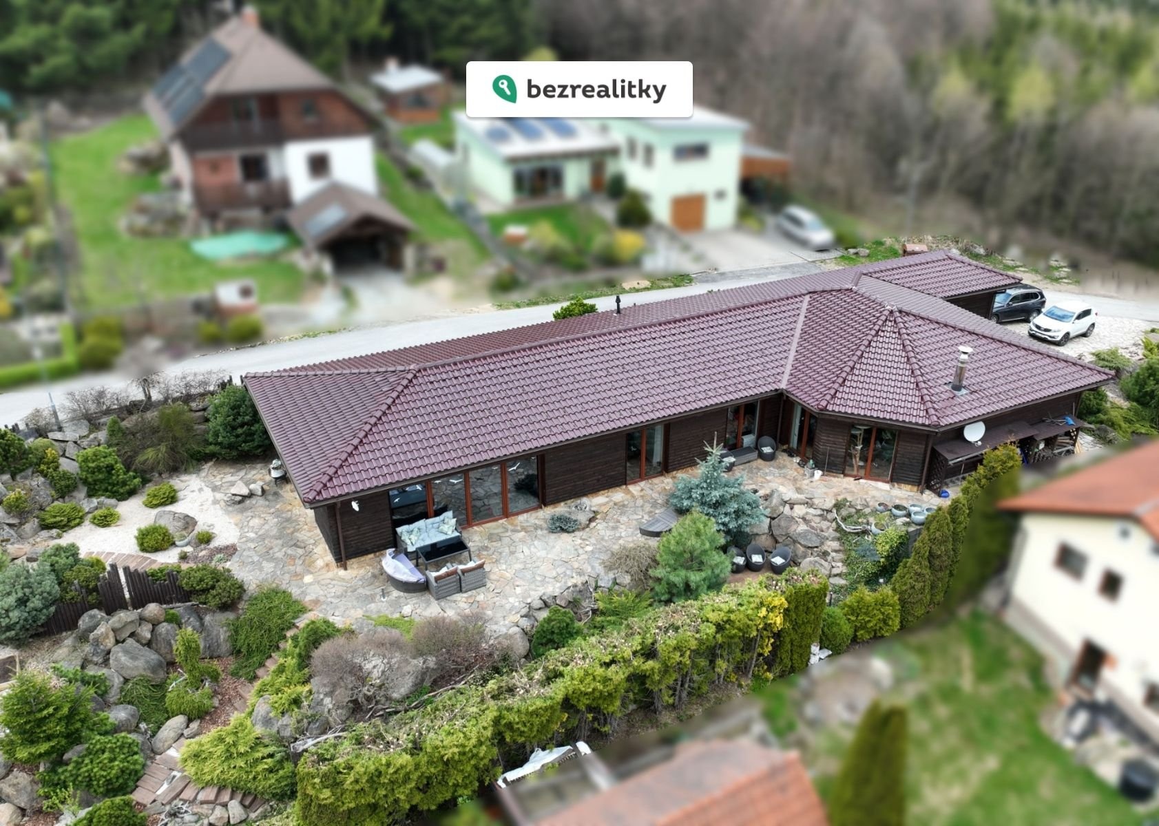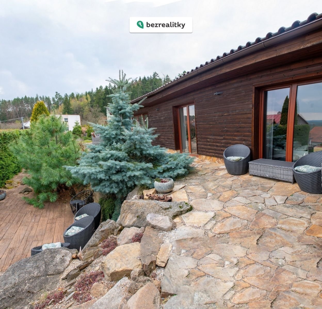Exteriér domu je pečlivě upravený a nabízí krásné terasy, okrasnou zahradu japonského typu i dostatek soukromí. Díky umístění u lesa je tato nemovitost ideální pro klienty, kteří hledají klidné bydlení v přírodě, ale zároveň chtějí zůstat v dobré dostupnosti do Jihlavy. Dům si lze představit i jako rekreační objekt.