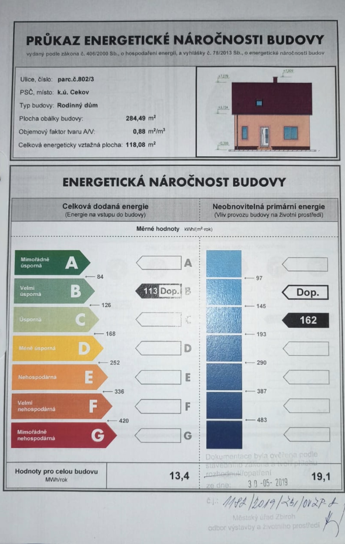 - Energetický ukazatel podle vyhlášky: č. 78/2013 Sb.