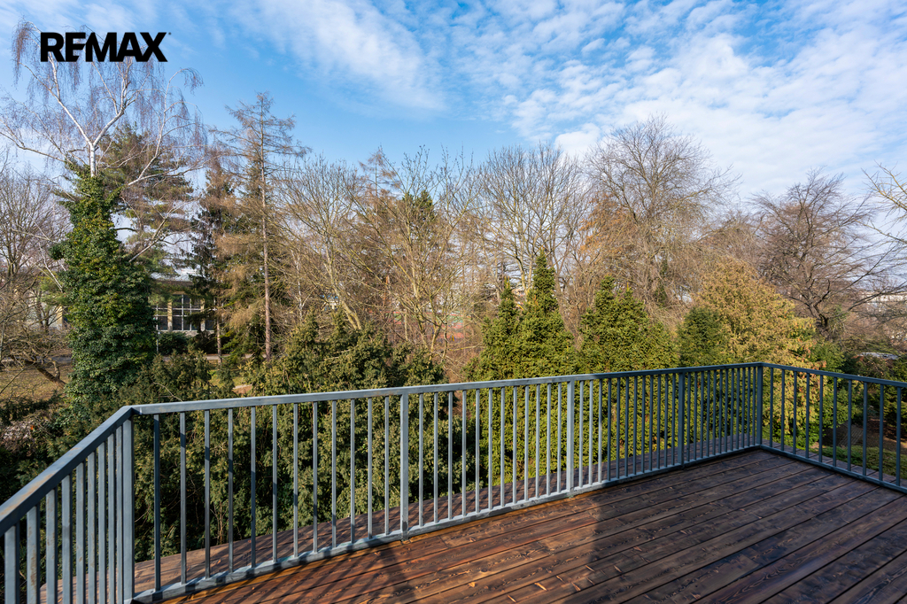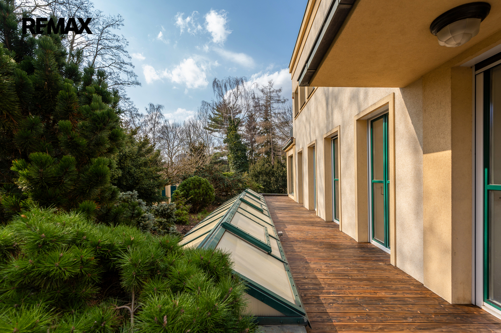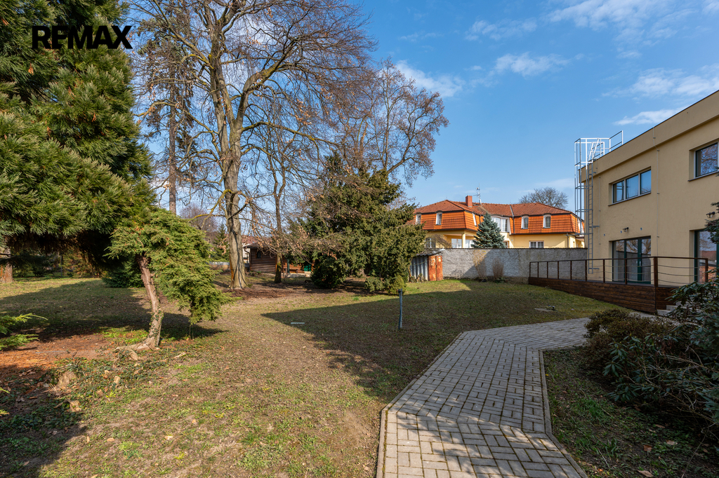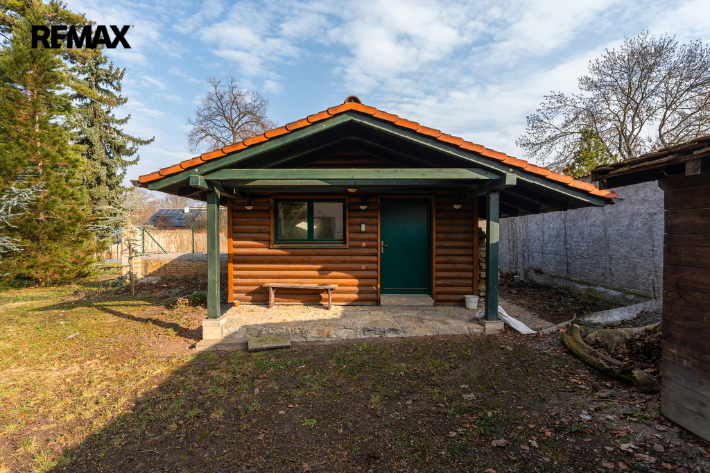 Součástí pozemku je rovněž původní zděný altán z období výstavby domu, dříve využívaný jako galerie, dále samostatná zděná stavba se srubovým obkladem vhodná jako zázemí pro správce či sklad na zahradní nářadí. Zahrada v parkovém stylu, s vzrostlými stromy a dvěma funkčními studnami, poskytuje vysokou míru soukromí a možnost dalšího využití. Nachází se zde mimo jiné i liliovník tulipánokvětý, který je v našich podmínkách raritou.