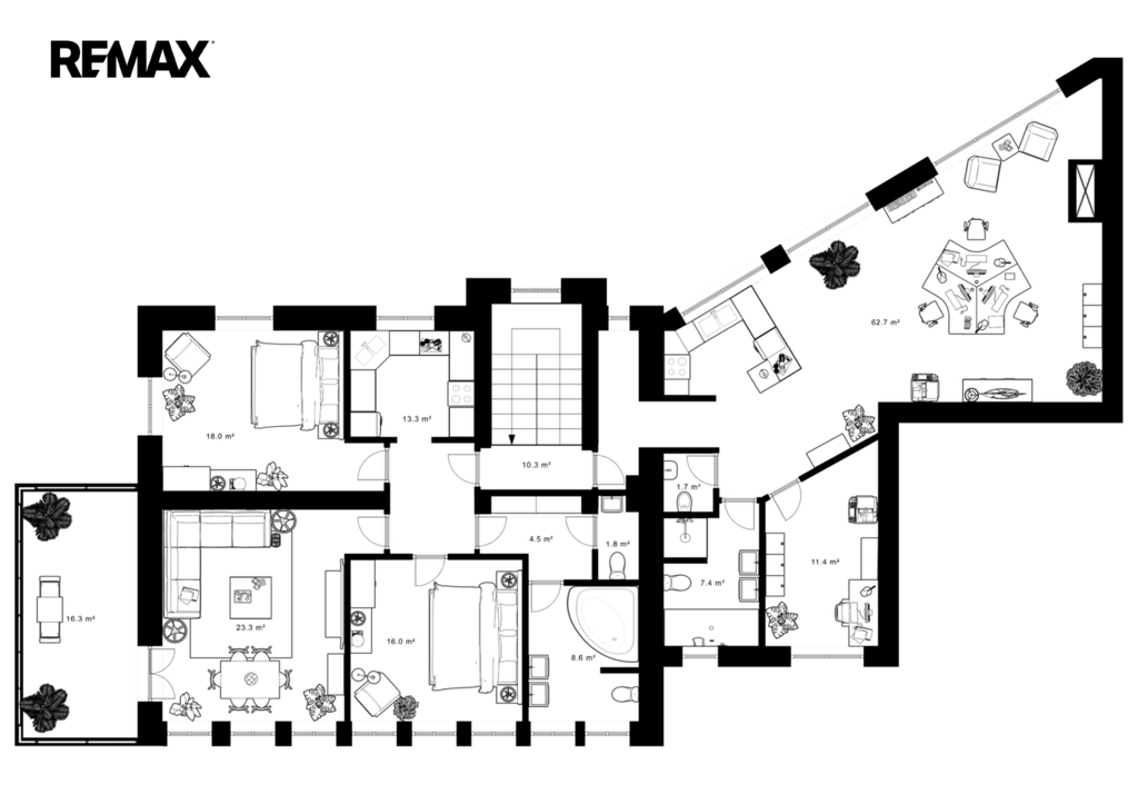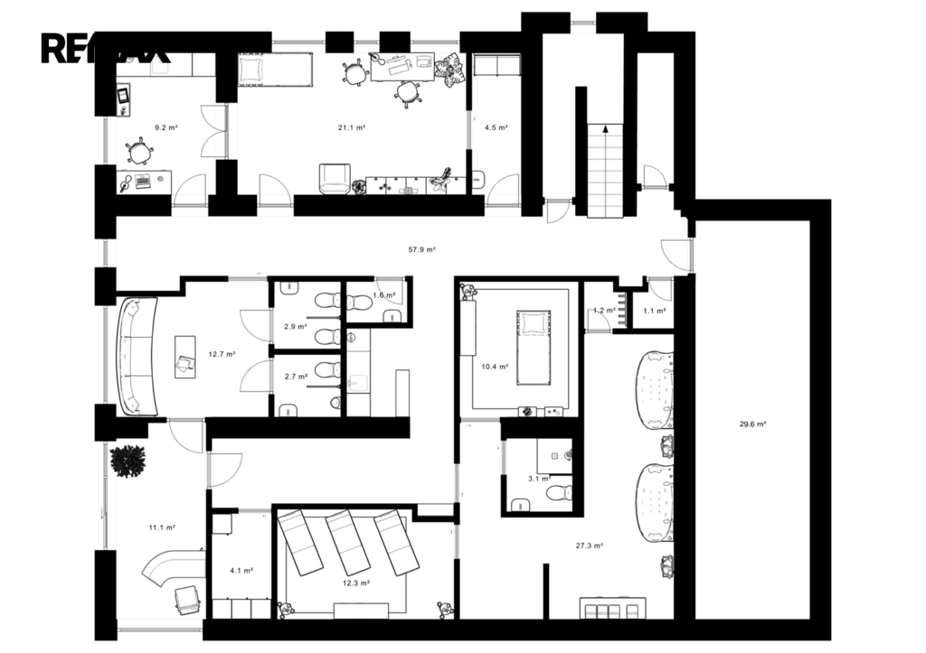 Celková užitná plocha staveb na pozemku o velikosti 2 791 m² přesahuje 700 m². V domě jsou aktuálně zkolaudovány čtyři bytové jednotky a nebytový prostor, což umožňuje samostatné i vícegenerační bydlení, rovněž kombinaci bydlení s podnikáním.