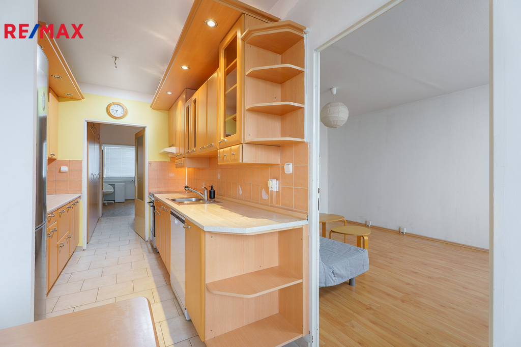 Byt je částečně vybaven – kuchyňská linka se spotřebiči, kuchyňský stůl, sedačka, konferenční stolky, policové skřínky, PC stolek, komoda.