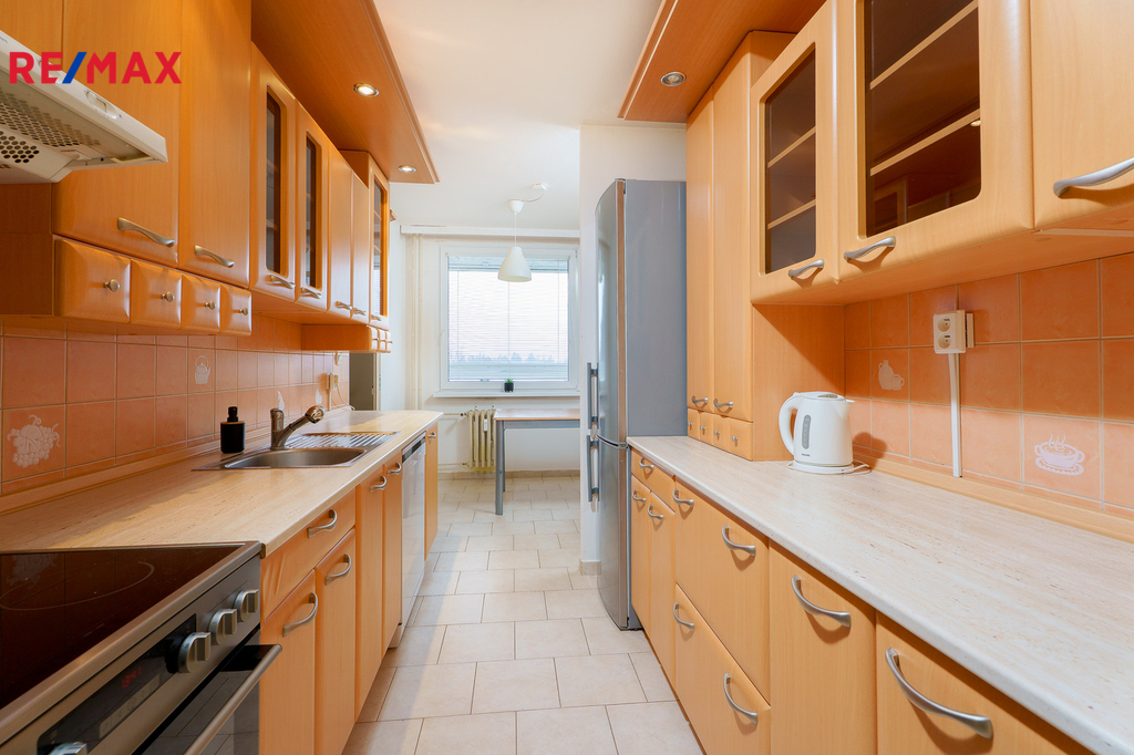 Jedná se o pěkný byt o celkové podlahové ploše 51,52 m² ve 4NP panelového domu, v této výměře není zahrnuta plocha lodžie (6,96 m²) a sklepa (3,48 m²). Celková užitná plocha je tedy 74.29 m². Byt je po částečné rekonstrukci. Okna jsou nová plastová a jsou orientována na obě strany domu - západ i východ, byt je díky tomu plný denního světla. Zasklená lodžie je na západní straně a směřuje do zeleně, je tedy ideálním místem pro večerní posezení.