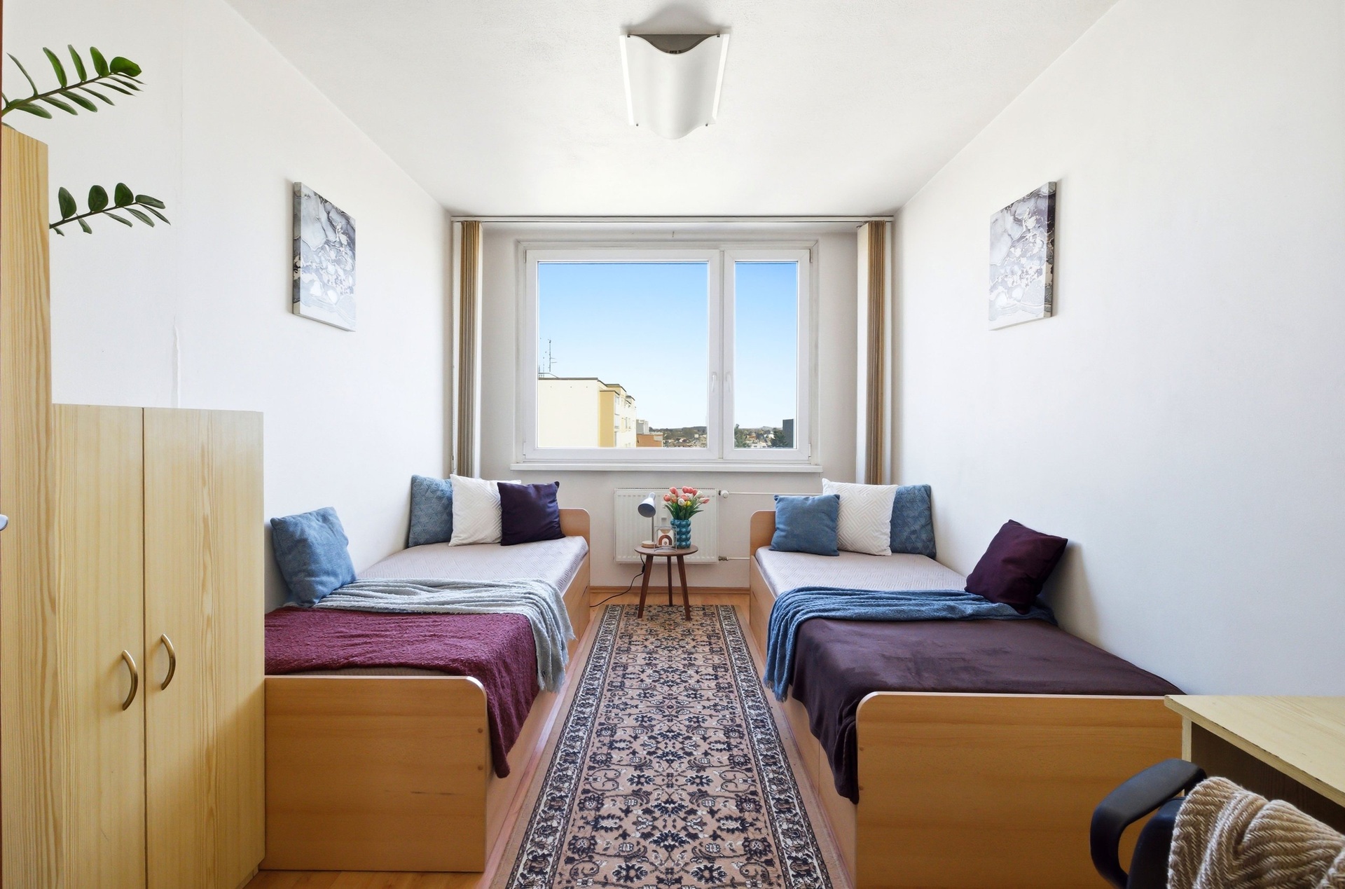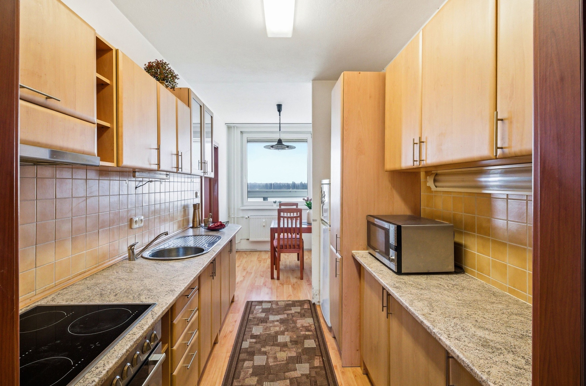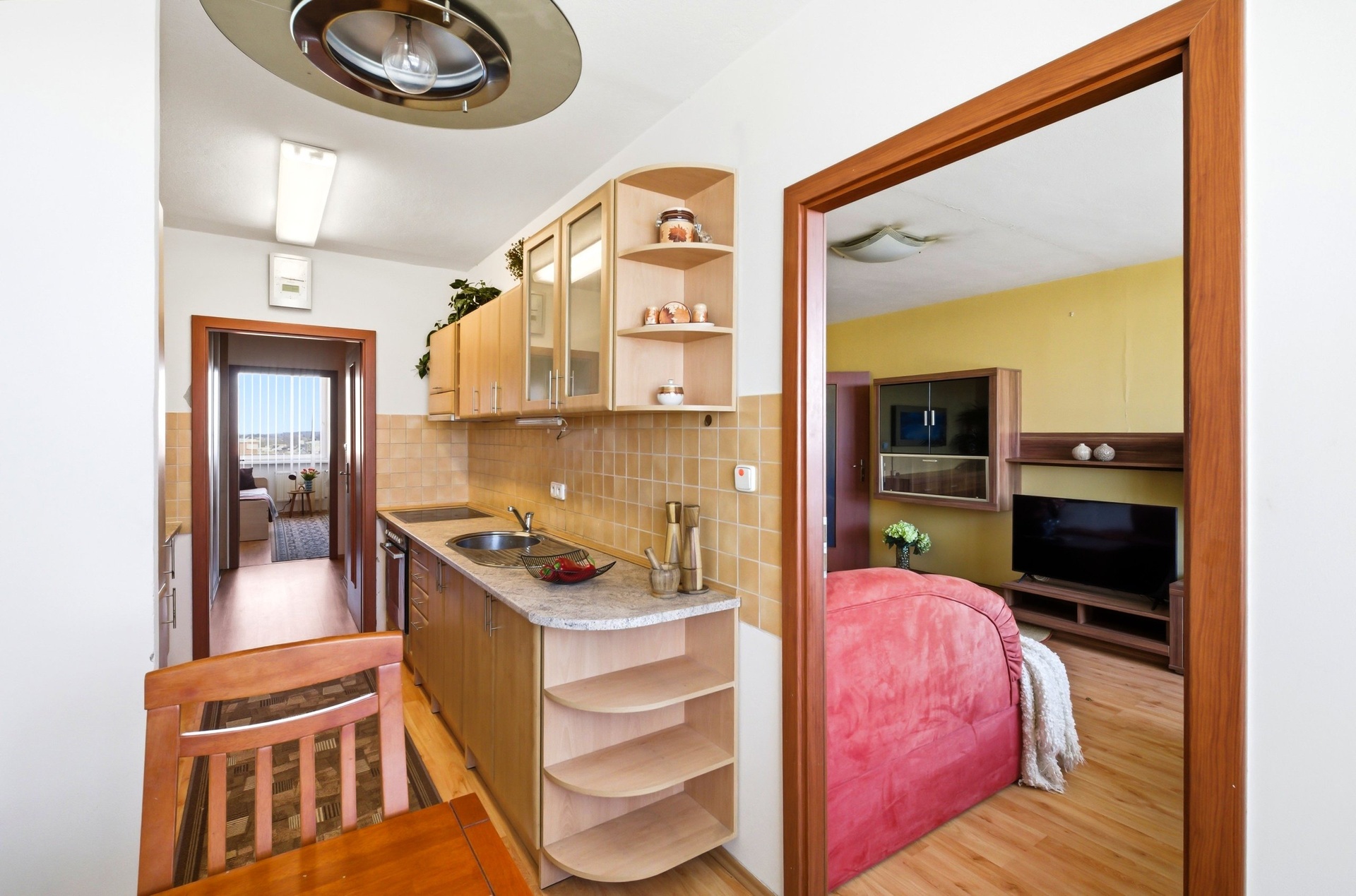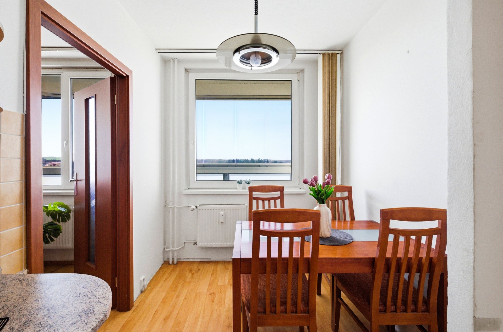 Součástí bytu je zasklená lodžie o velikosti 6 m² a orientovaná na západ, ideální pro odpočinek s výhledem do okolí. K bytu náleží také sklepní kóje o velikosti 3 m².