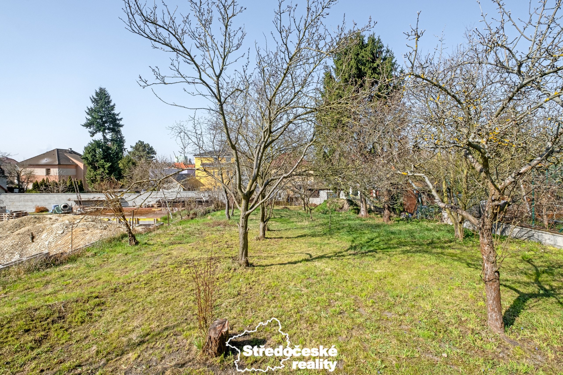 V této přední části pozemku se aktuálně nachází menší původní rodinný dům (3+kk, cca 70m2), který je určený k rekonstrukci, popřípadě k odstranění. Nebo je možné stávající dům využít pro ubytování během budoucí stavby.