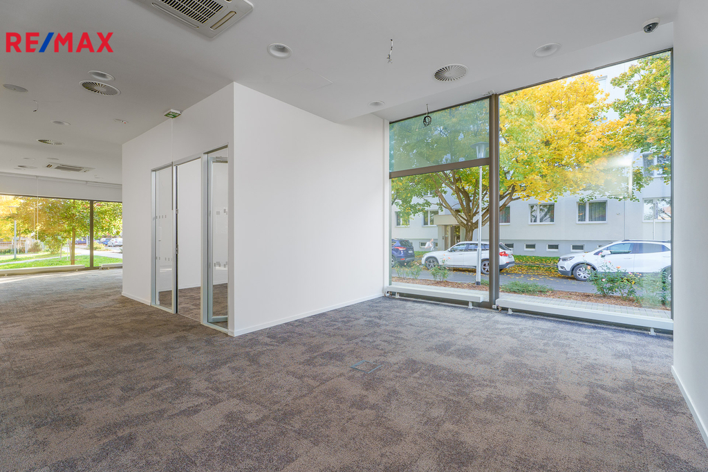 Prostor o celkové užitné ploše 155,24m² včetně zázemí je ideální pro bankovní pobočku či podobně orientované využití, showroom nebo obchodní místo a můžete si jej přizpůsobit vašim potřebám.