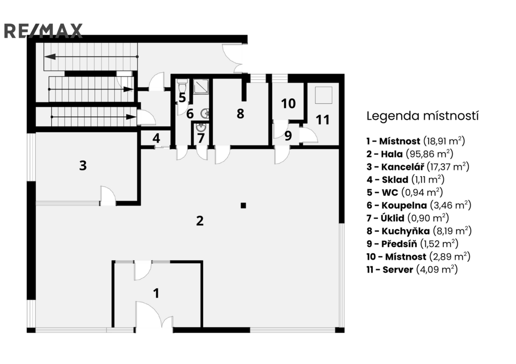 - Plocha kanceláří: 155 m²
