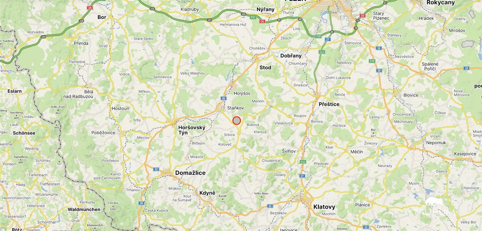 Čermná je malá obec vzdálená pět minut od Staňkova. Domažlice i Plzeň jsou dobře dostupné autem. Pozemky mají příjemnou polohu na okraji obce, díky čemuž nabízí klid, soukromí a výhled do krajiny.