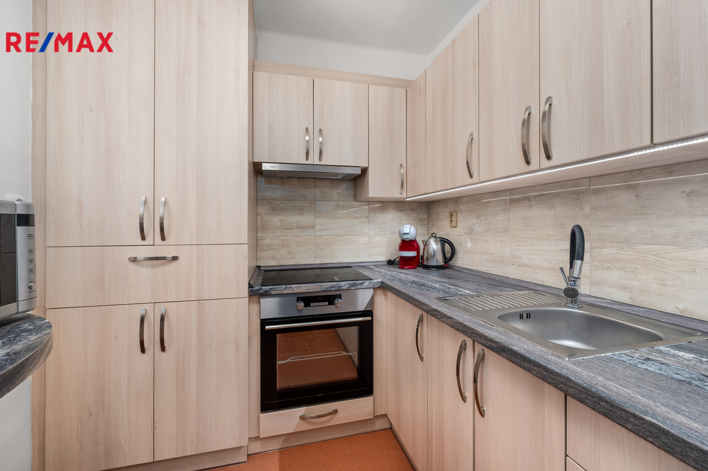Interiér bytu byl pečlivě rekonstruován od podlah, přes elektroinstalace po moderně vybavenou kuchyň s rohovou linkou. Prostorná vstupní chodba vás zavede vpravo do koupelny a samostatné toalety, dále do přívětivé kuchyně. Přímo naproti vstupním dveřím se otevře obývací pokoj s jídelním koutem, ze kterého se dostanete do ložnice. Další pokoj se nachází vlevo od vchodových dveří, naproti koupelně. Vzdušný obývací pokoj s okny orientovanými na jihozápad a západ nabízí příjemné pohledy do okolní zeleně, přičemž ložnice a kuchyň na východě vítá sluneční paprsky každé ráno.