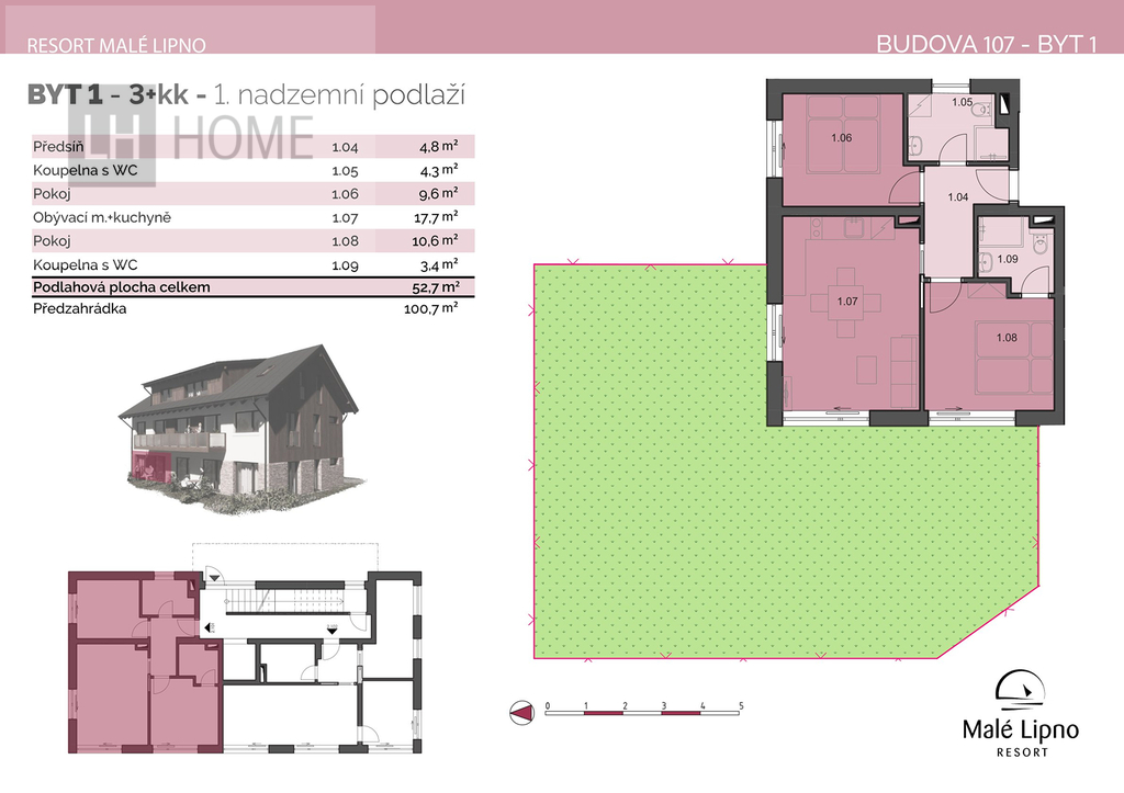 Nabízíme ke koupi moderní byt 3+kk o velikosti 53,80 m² v 1. nadzemním podlaží novostavby v oblíbeném projektu Resort Malé Lipno. Byt disponuje vlastní zahradou o rozloze 100,70 m², která poskytuje ideální prostor pro relaxaci, grilování nebo dětské hry.
