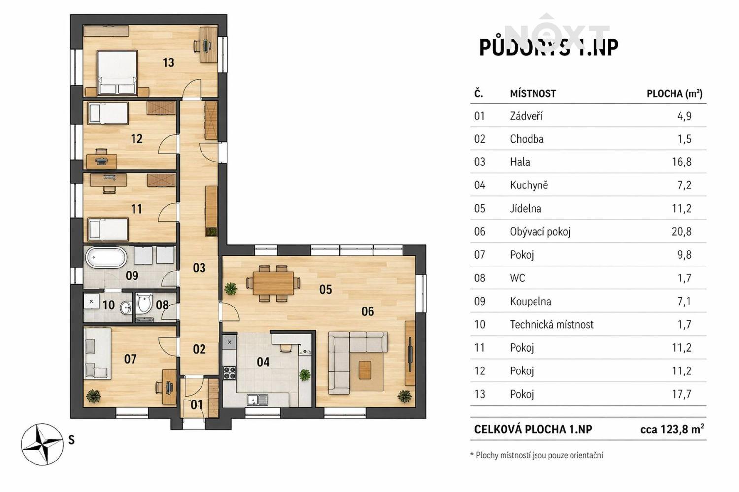 - Užitná plocha: 124 m²