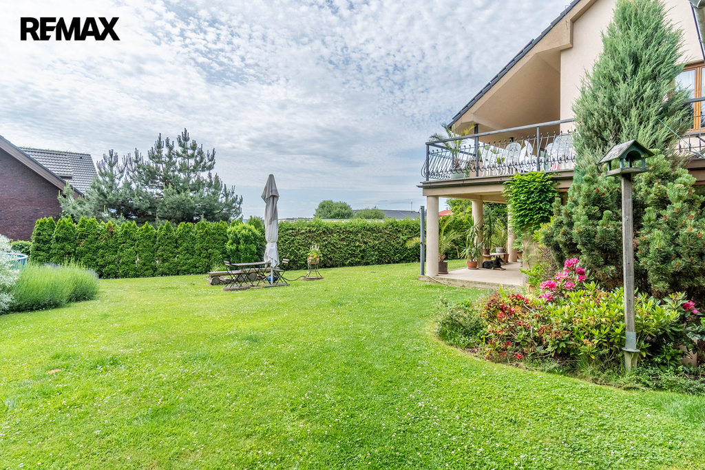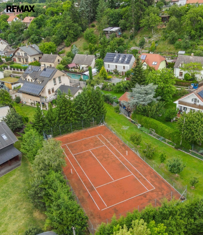 Dům o užitné ploše 420 m² stojí na pozemku o velikosti 2 339 m² a díky promyšlenému uspořádání je ideální také pro vícegenerační bydlení. Zahrada nabízí bazén, relaxační zóny a antukový tenisový kurt, což vytváří výjimečné zázemí pro rodinný život, sport i odpočinek.