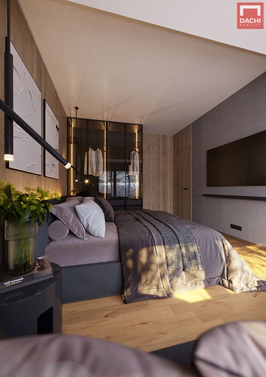 Každý apartmán disponuje 2 nadzemními podlažími, praktickou dispozicí 4kk o užitné ploše 85 m², vlastním pozemkem + společným prostorem před domem. V apartmánu najdete prostorný obývací pokoj propojený s kuchyní a jídelnou, 3 ložnice, koupelnu, samostatné WC a technickou místnost/sklad, kam snadno uložíte kola, lyže nebo jiné vybavení. Součástí je také terasa, která je ideální pro relaxaci – třeba s vířivkou a výhledem do okolní přírody. K apartmánu náleží dvě vyhrazená parkovací místa.