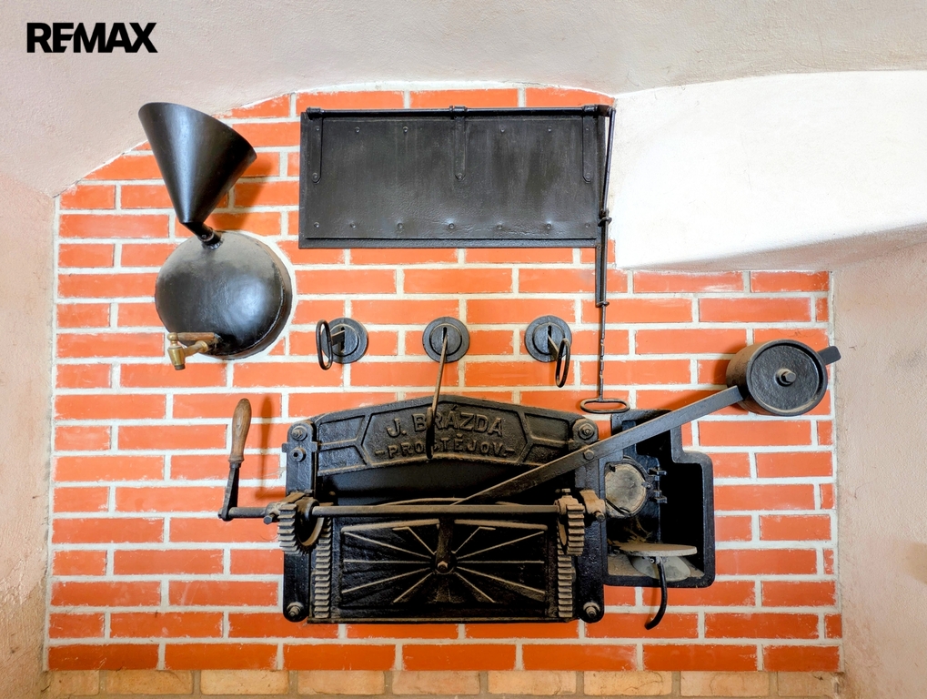 Elektřina světelná i motorová, plyn s kotlem, obecní voda i odpad už jsou zapojené, takže nic archaického.