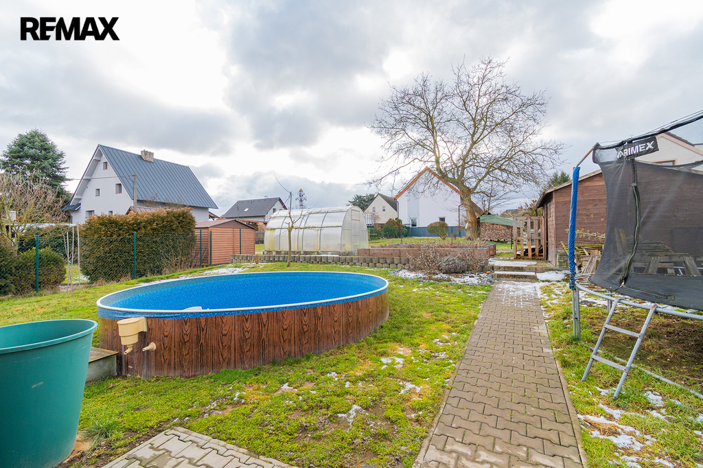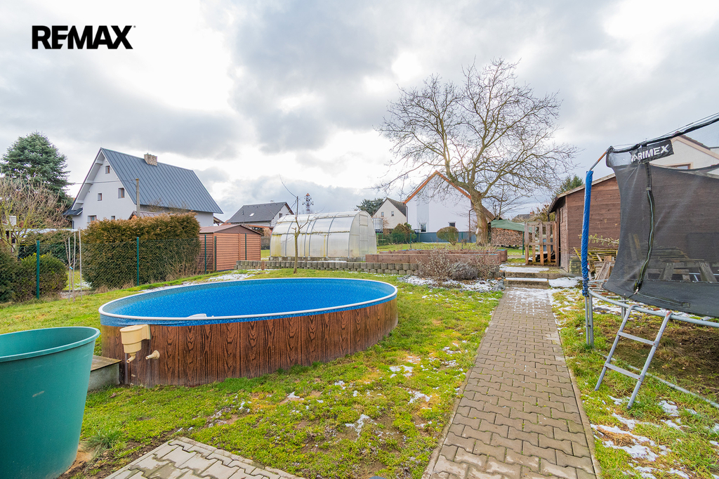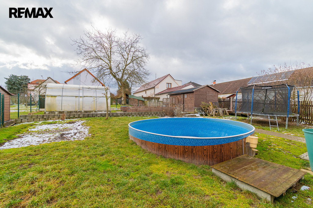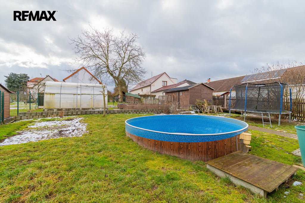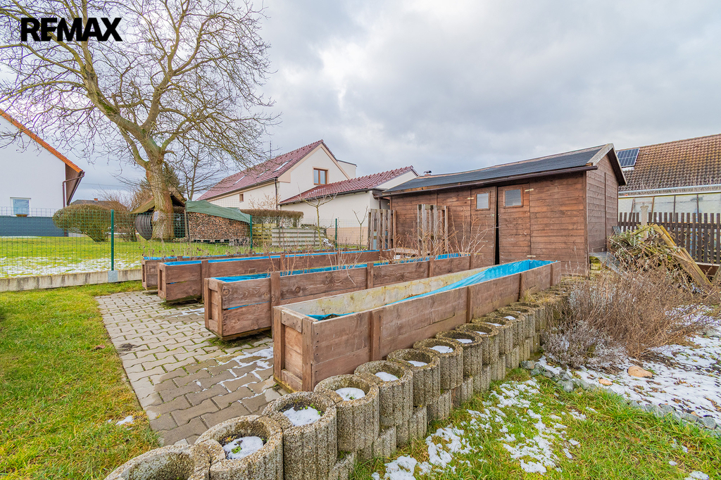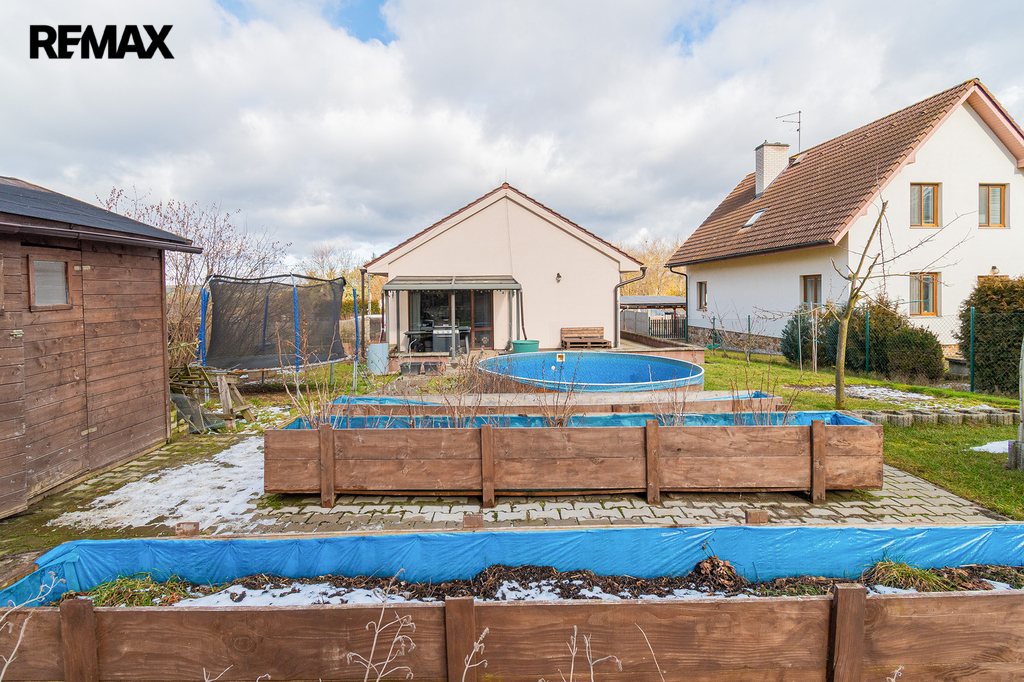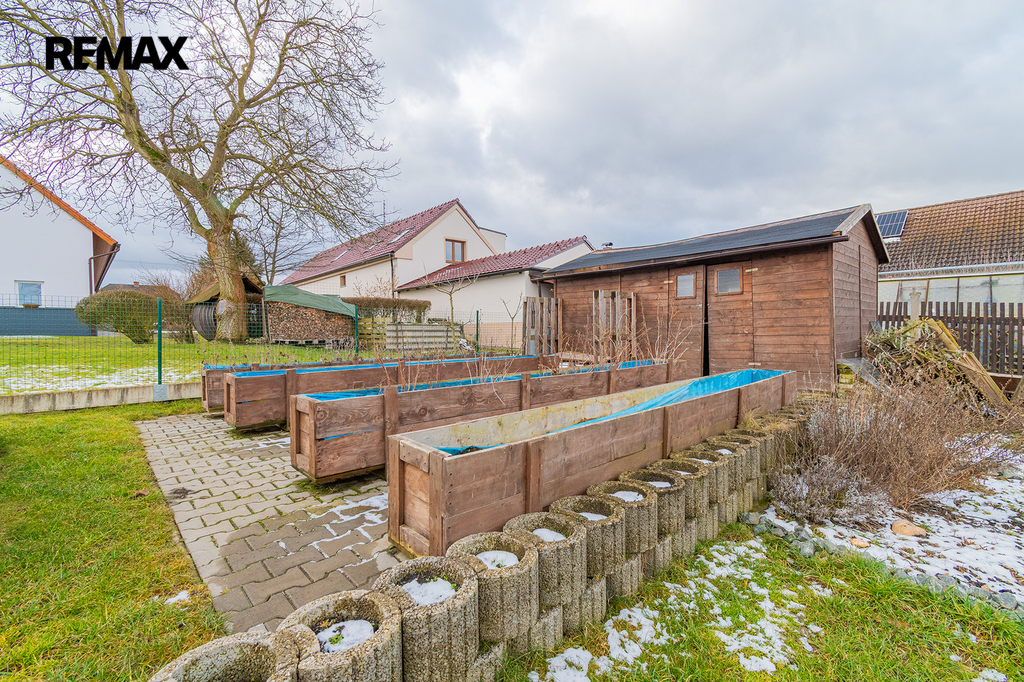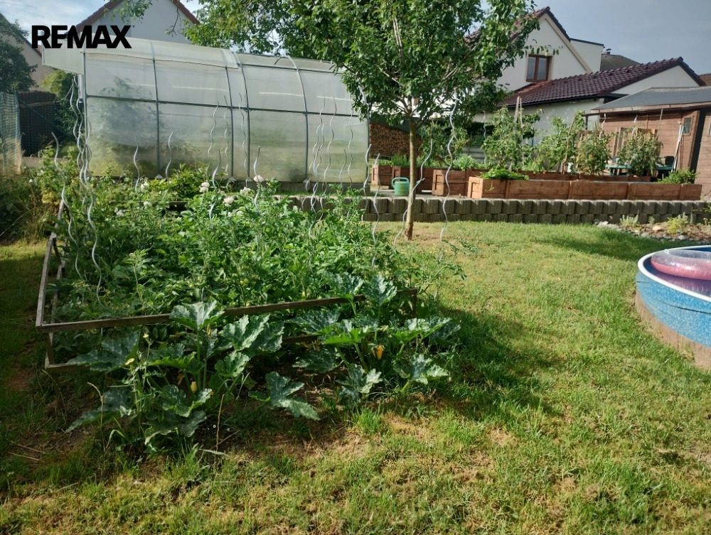 Před domem je parkoviště pro tři automobily, za domem pak nalezneme relaxační zónu s terasou a bazénem. Ale také se skleníkem a vyvýšenými záhony. Srdce zahradníka zaplesá.