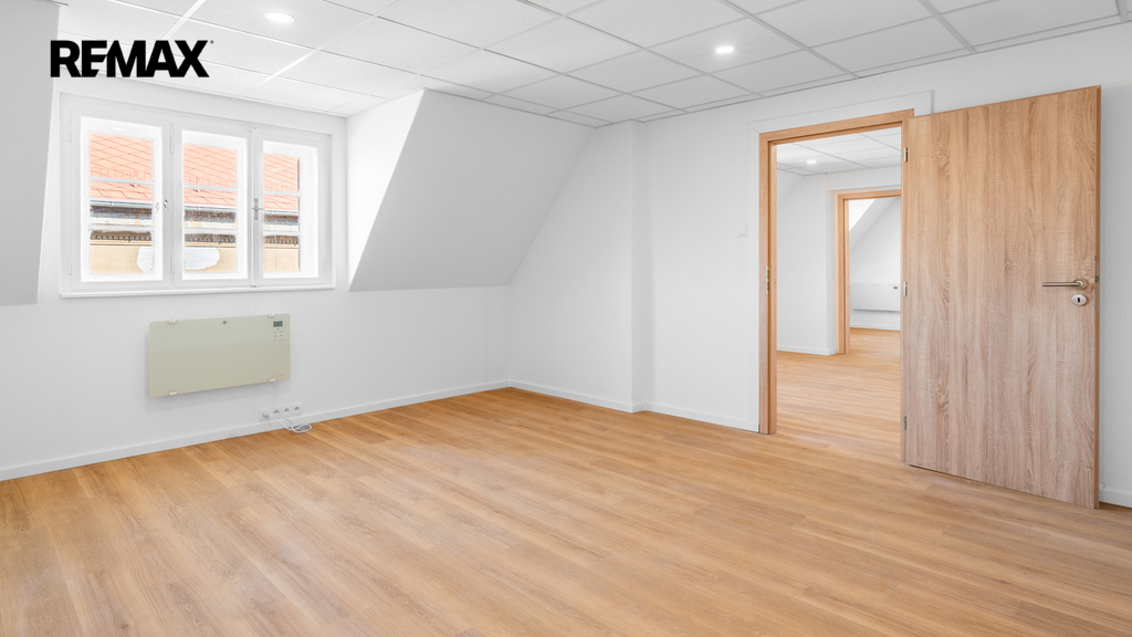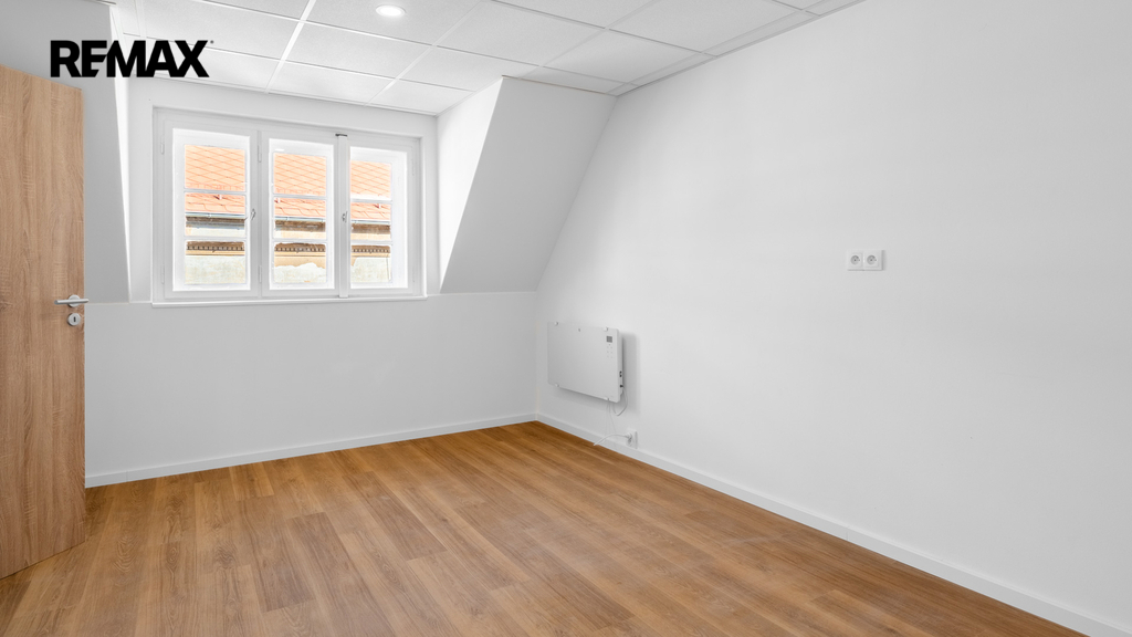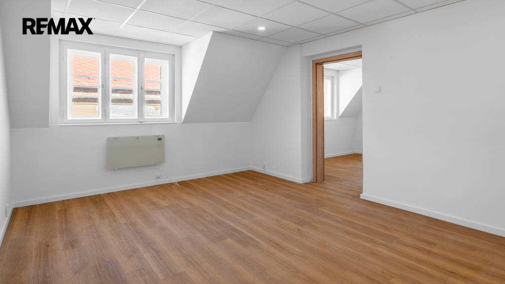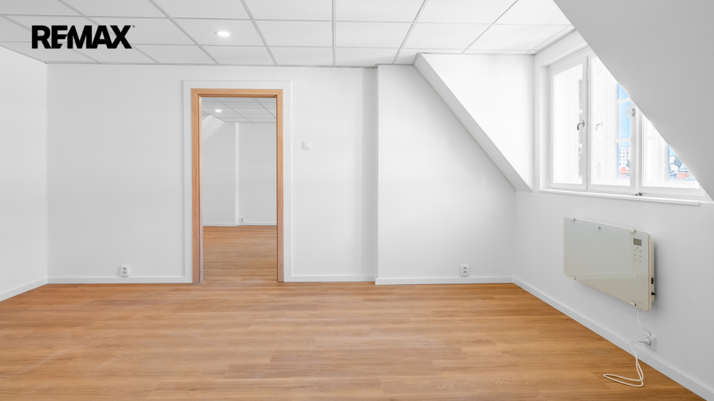Byt prošel rekonstrukcí, včetně položení nových podlah a renovací oken. Dispoziční řešení bytu je patrné z přiloženého půdorysu. Interiér nabízí podkrovní charakter s dostatkem světla.