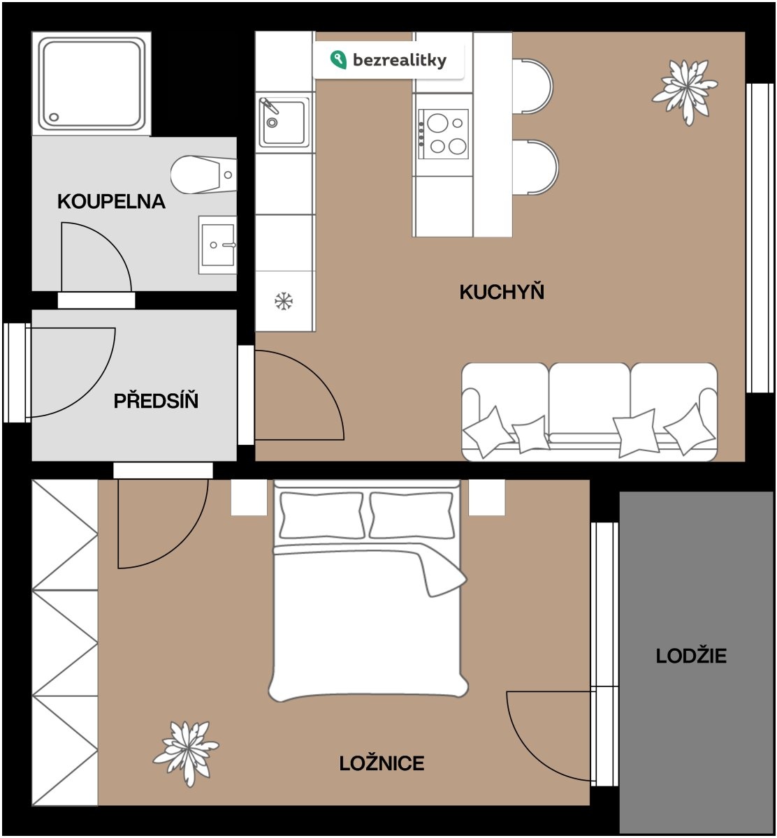 | Dispozice/podlahová plocha: | 2+kk/41 m² |