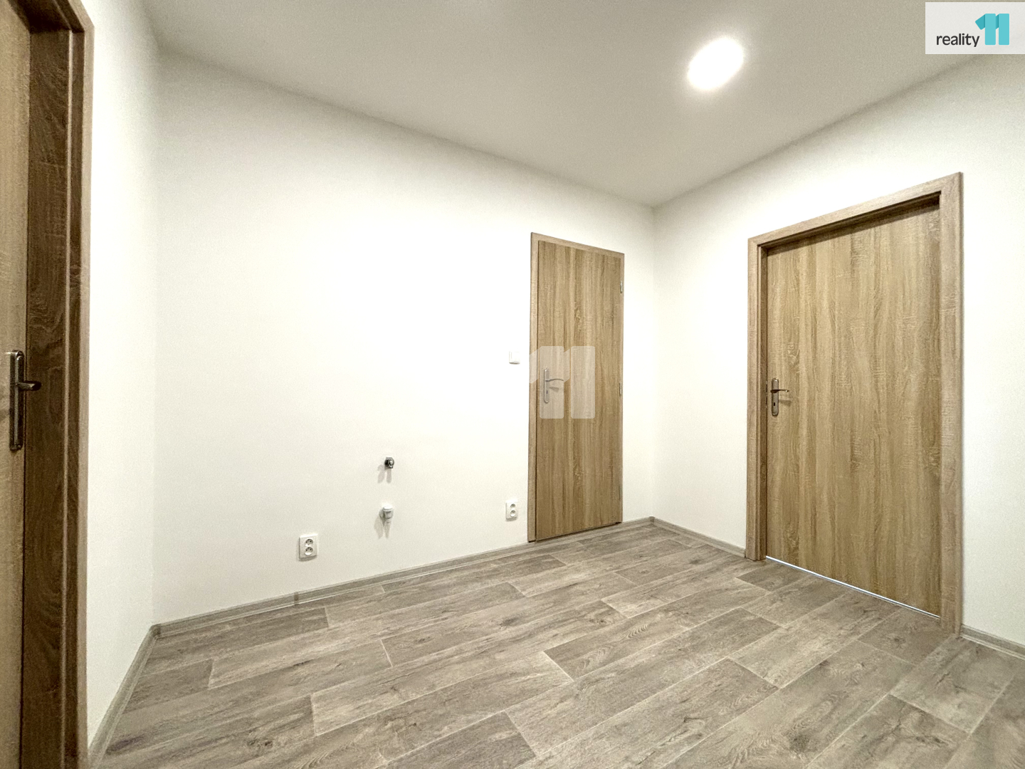 Dispozice: obývací pokoj s kuchyňským koutem, samostatná ložnice a prostorná chodba s možností úložných prostor