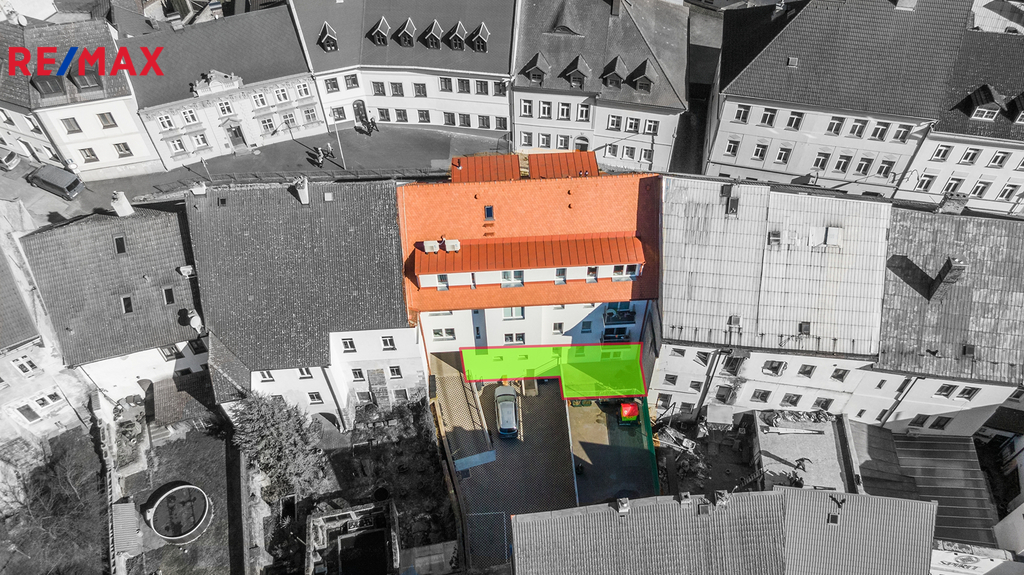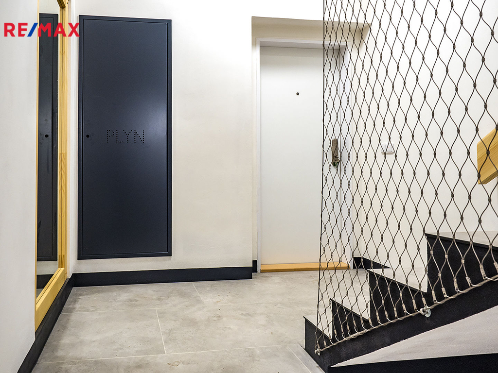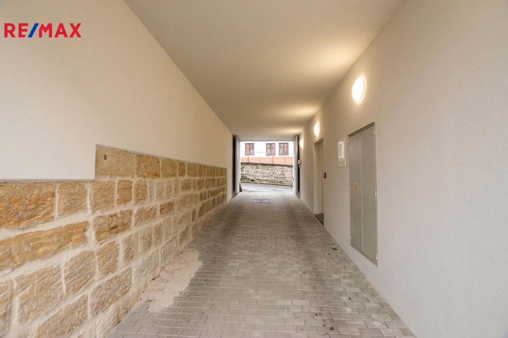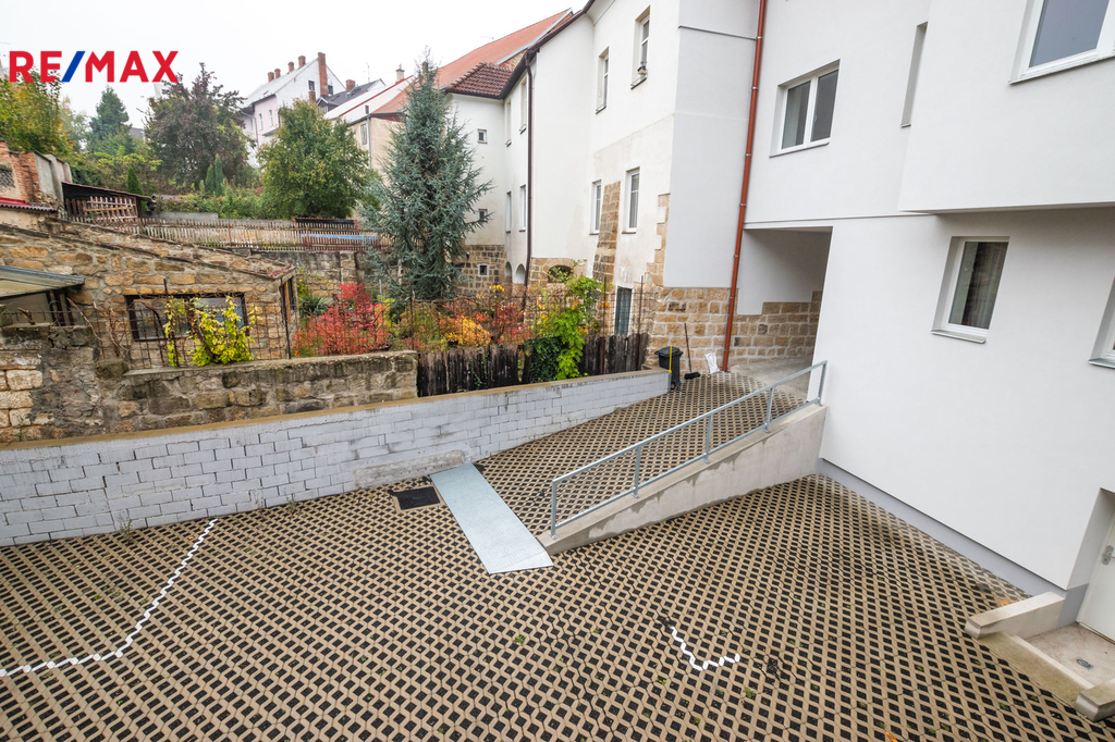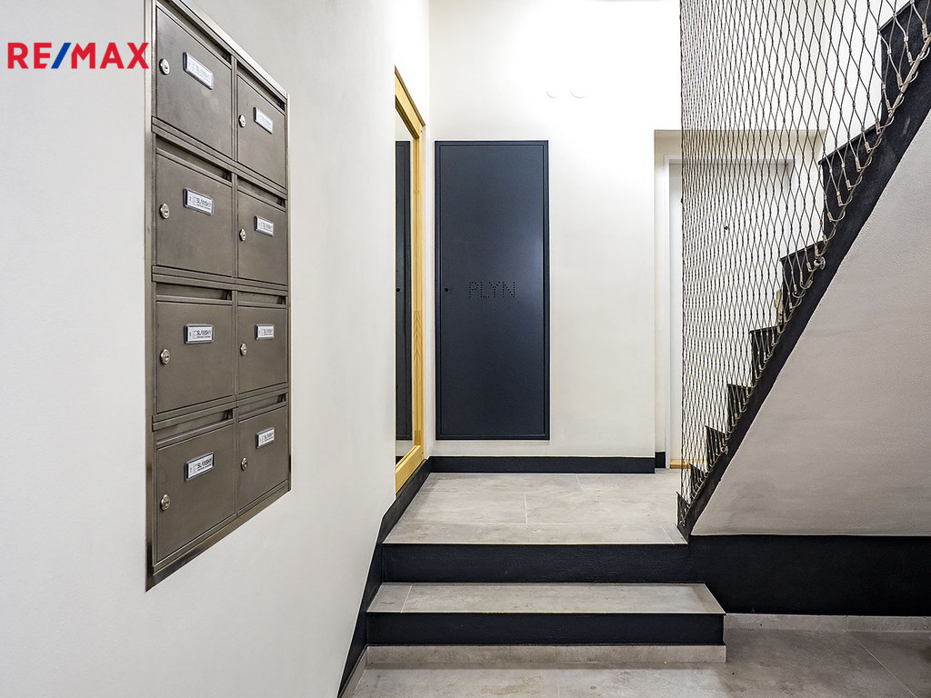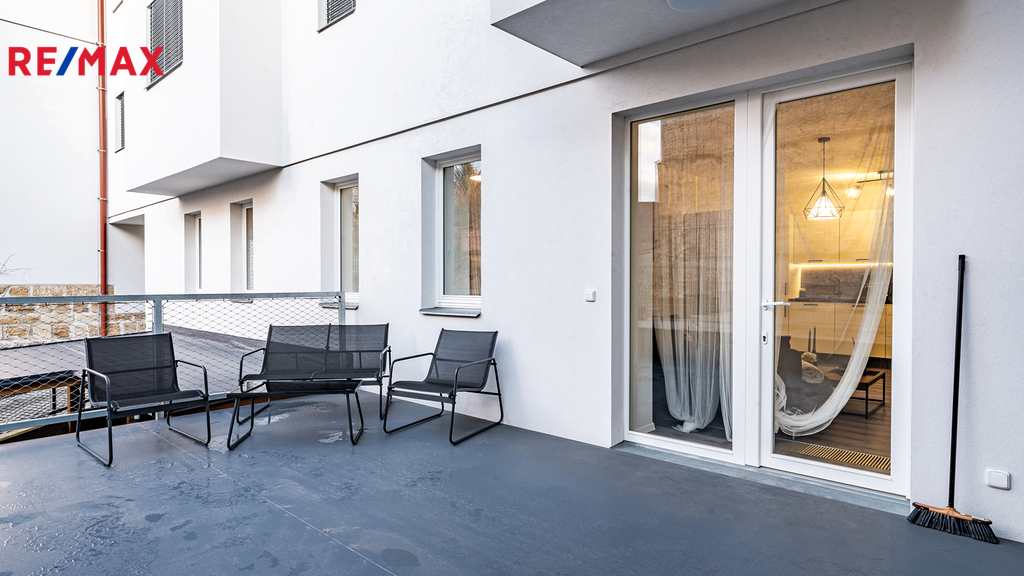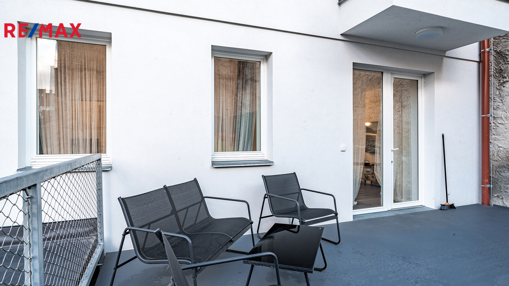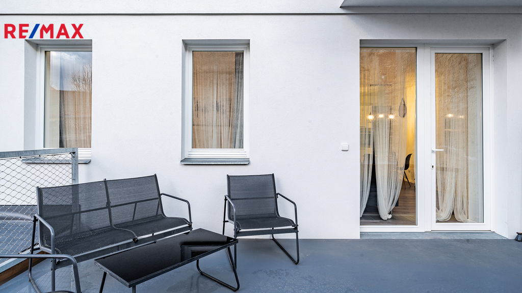 Dům má pouze 7 bytů, tento je v 1.NP a jako jediný má terasu, samozřejmostí je vlastní měření plynu, elektřiny i vody. Dům, ve kterém se byt nachází, prošel celkovou a velmi precizní rekonstrukcí (resp. byl z větší části nově postaven). K bytu náleží vyhrazené, kryté a prostorné parkovací stání pro 1 osobní automobil ve dvoře, do kterého se vjíždí automaticky otevíranými a uzamykatelnými vraty. K dispozici je rovněž sklepní prostor v suterénu domu.