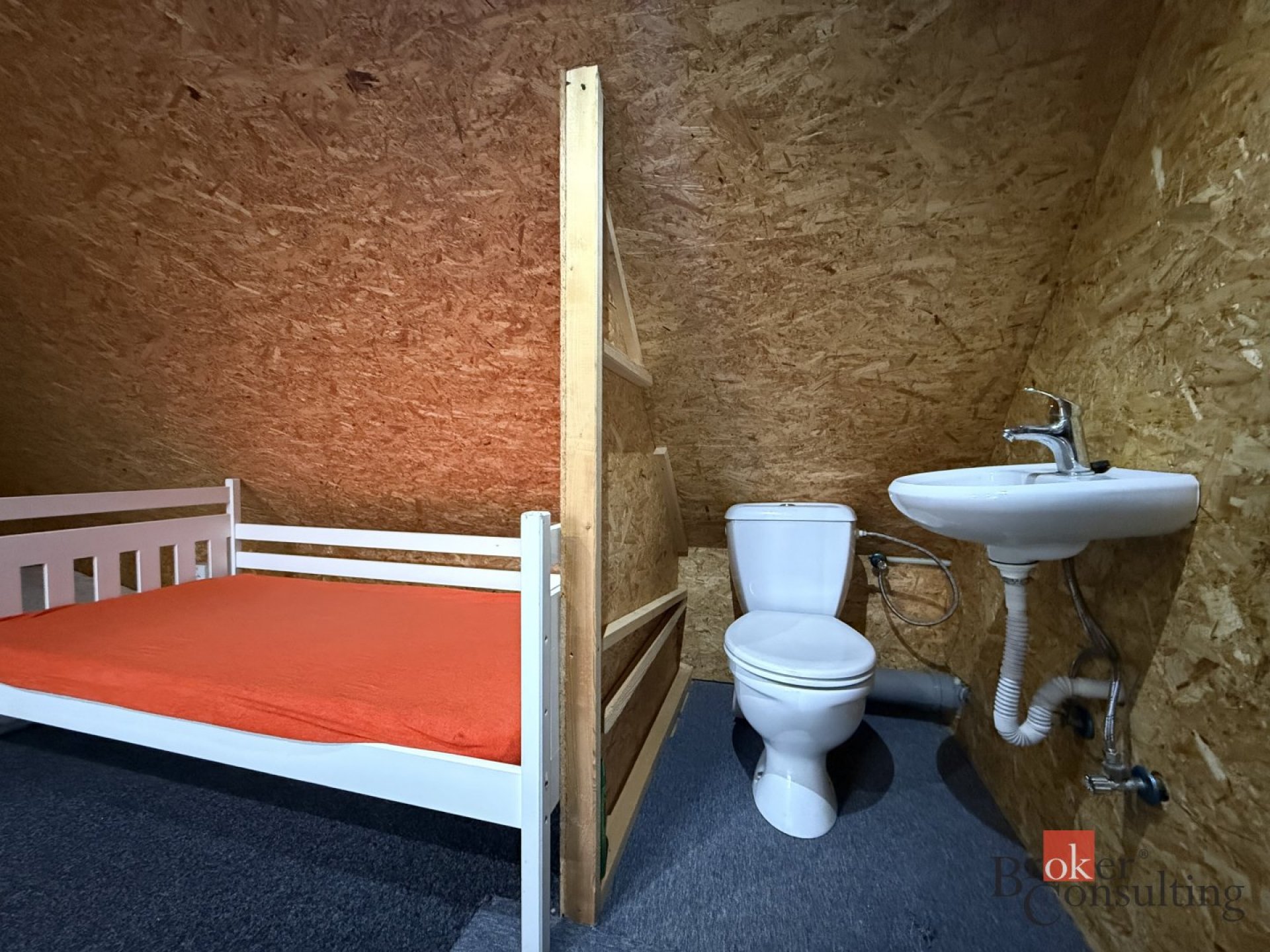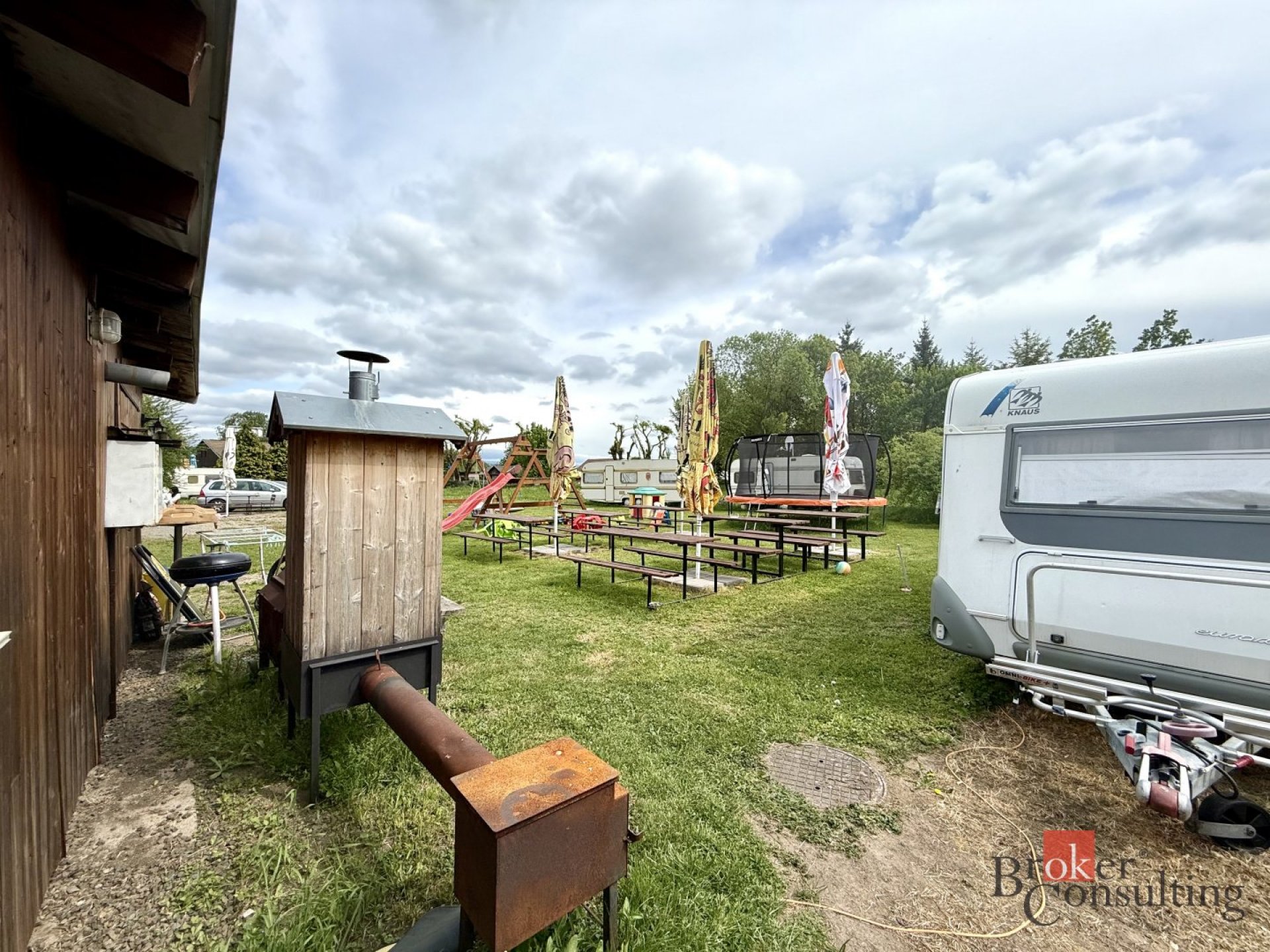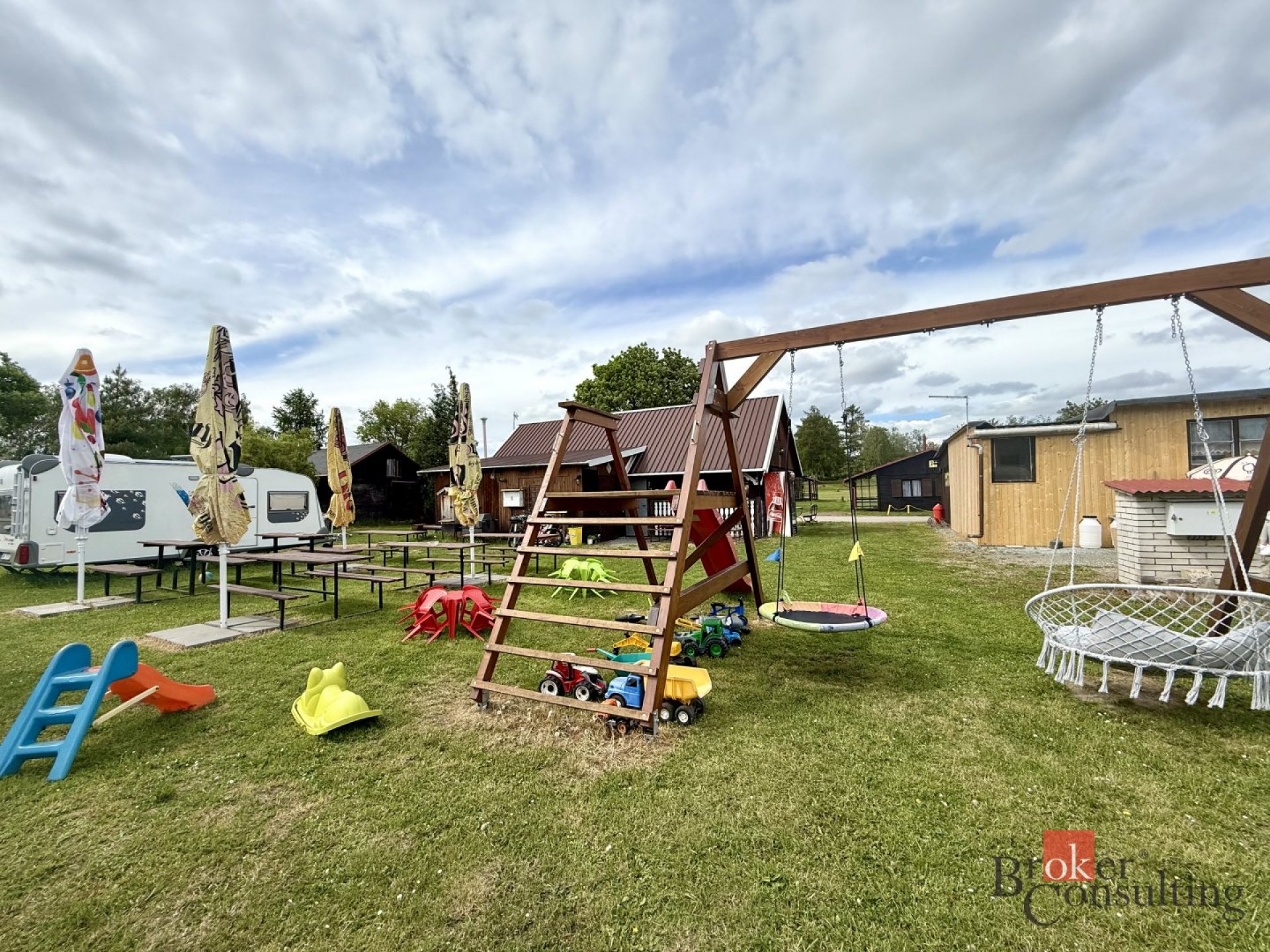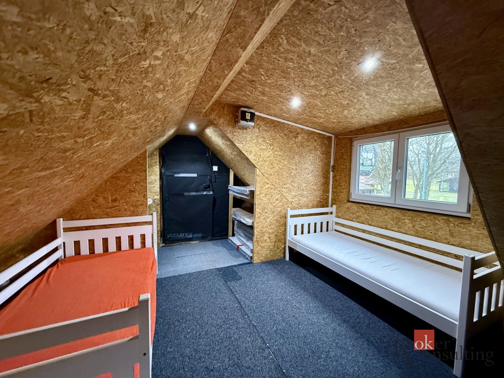 Kiosek je vybavený k okamžitému provozu, tak jak vidíte na fotkách. Nabízí příjemné venkovní posezení jak z přední, tak i ze zadní strany objektu. Velkou výhodou je podkroví, kde se nacházejí dvě obytné místnosti, technická vstupní místnost a sociální zázemí. Tento prostor lze využít jako bydlení pro personál, nebo jako ubytovací kapacitu pro hosty, což může být zajímavé rozšíření nabídky služeb.