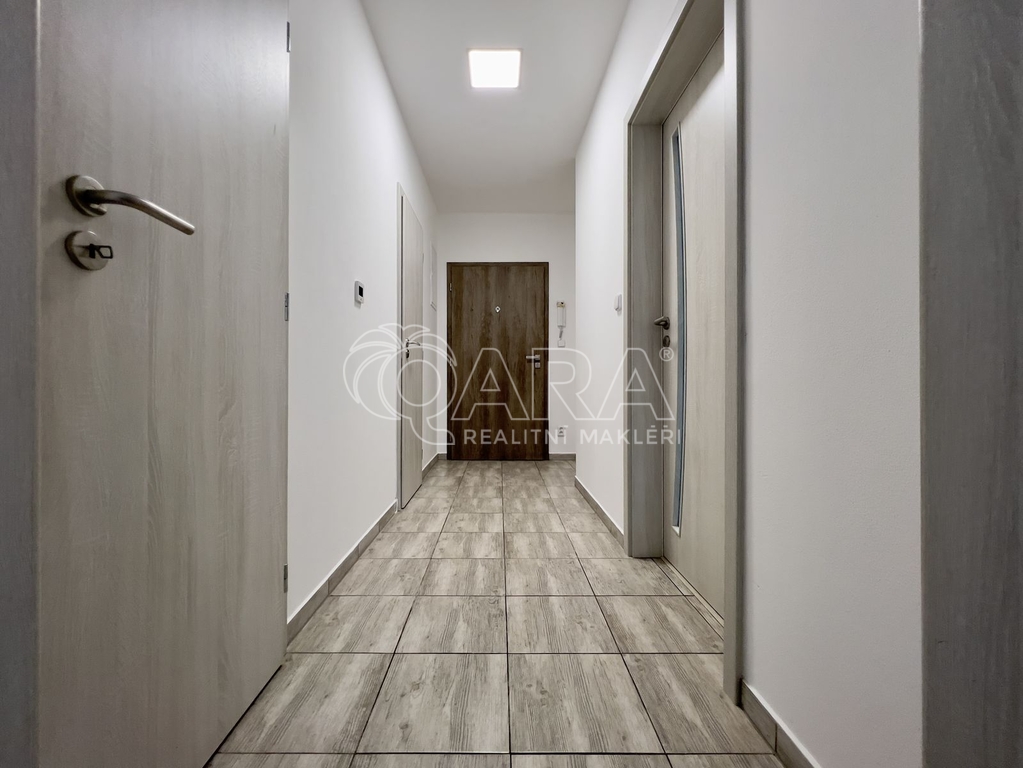 Jednotka o podlahové ploše 48 m² se nachází ve 2. nadzemním podlaží novostavby z roku 2020 (výtah v domě není). Skládá se z chodby, kde je spousta prostoru na umístění věšáků a botníku. Z chodby se dostaneme do kuchyně spojené s jídelnou a obývacím pokojem, která je zařízena kuchyňskou linkou na míru a všemi spotřebiči (vestavná lednice a mrazák, čtyřplotýnková varná deska, digestoř a elektrická trouba) a má výměru 25 m². Z kuchyně je přístupný balkon o výměře 6 m². Ložnice o výměře 12 m² je zařízena prostornou vestavěnou skříní se zrcadlem, která pojme opravdu hodně věcí a je přístupná z chodby. Koupelna společně s WC je přístupná také z chodby a je vybavena sprchovým koutem, umyvadlem, skříňkou pod umyvadlem, zrcadlem a splachovacím WC. Přípojka na pračku je v technické místnosti. Jednotka se pronajímá jako nezařízená, tudíž si ji můžete vybavit podle svých vlastních představ. Jednotka bude nově bíle vymalovaná a v kuchyni s obývacím pokojem byla 12/23 položená nová podlaha.