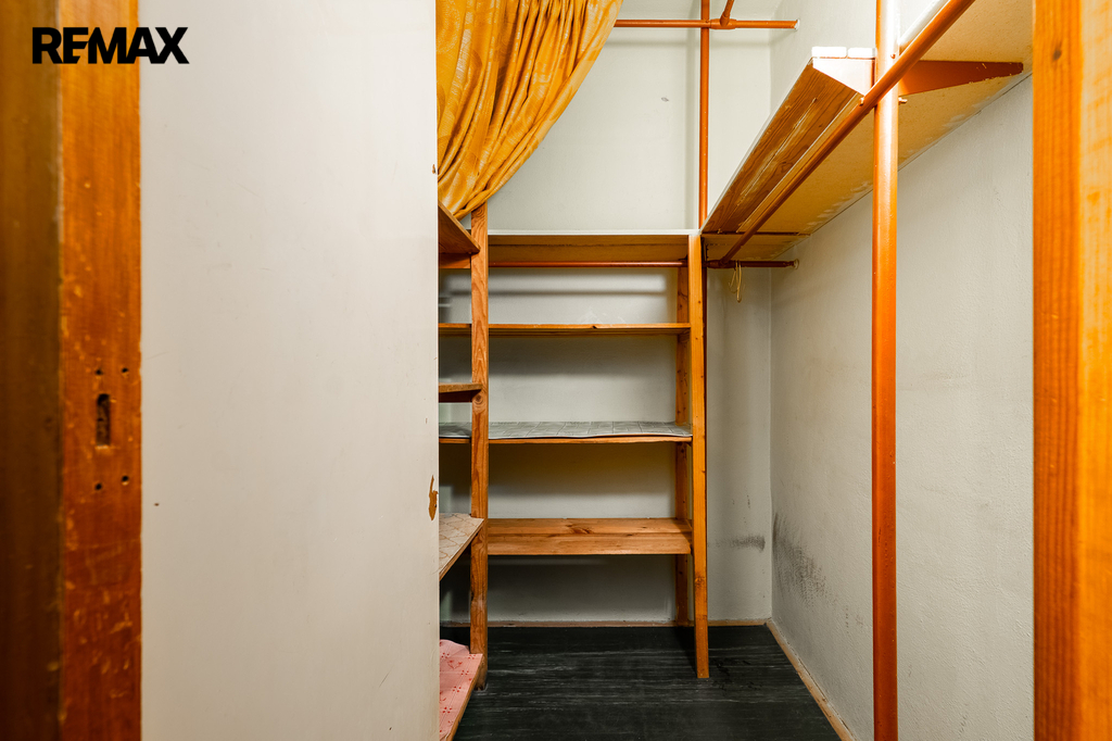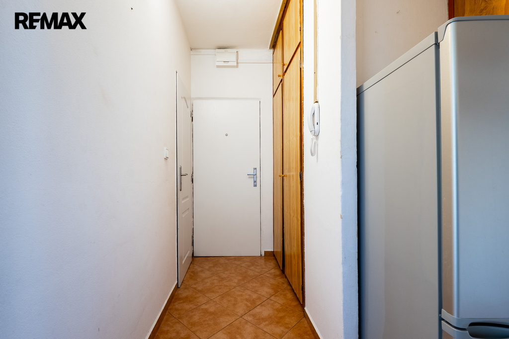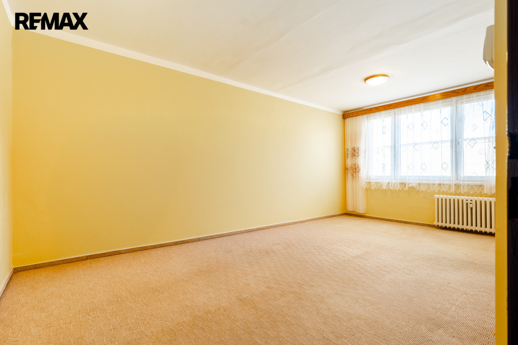 Byt se skládá z obývacího pokoje (20,44 m2), ložnice (14,28 m2) a kuchyně s jídelnou o výměře 12,44 m2. Byt prošel před 10 lety rekonstrukcí, kdy bylo odstraněno původní umakartové jádro a nahrazeno vyzděným, byla instalována nová kuchyňská linka, položena dlažba v kuchyni a chodbě. Dále byly udělány nové rozvody elektřiny v koupelně a kuchyni. Ze vstupní chodby (7,13 m2) je ještě přístup do praktické komory – šatny (3,33 m2).