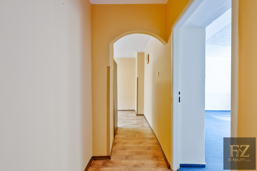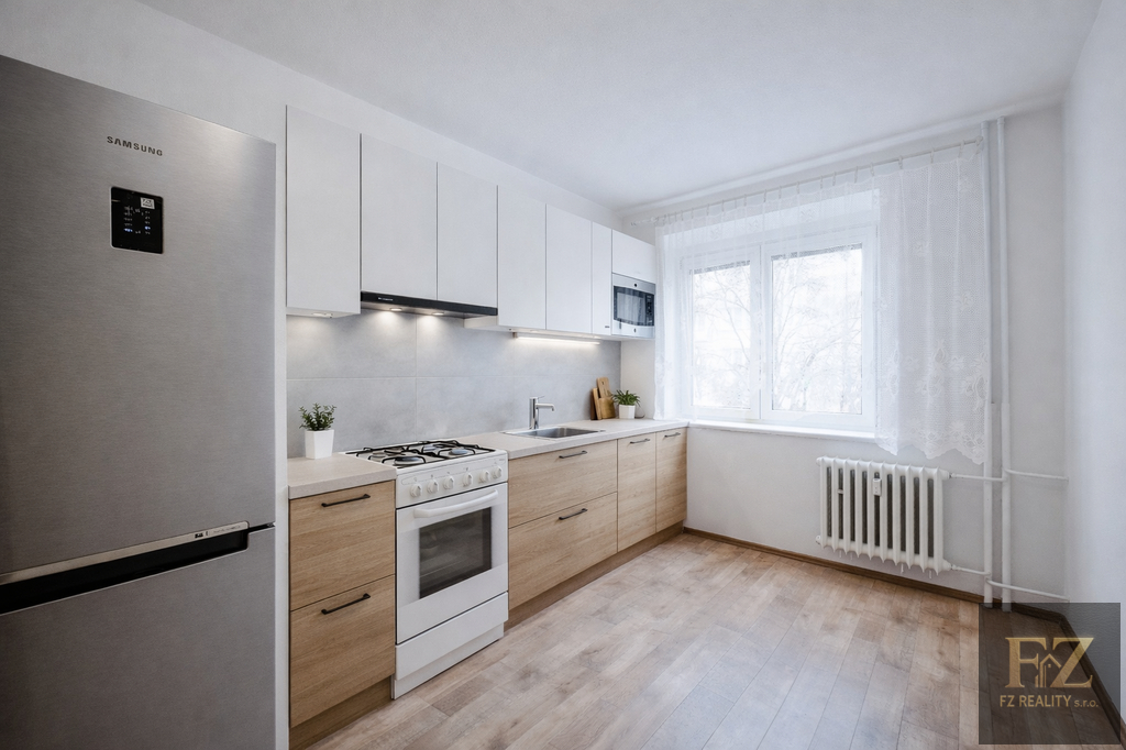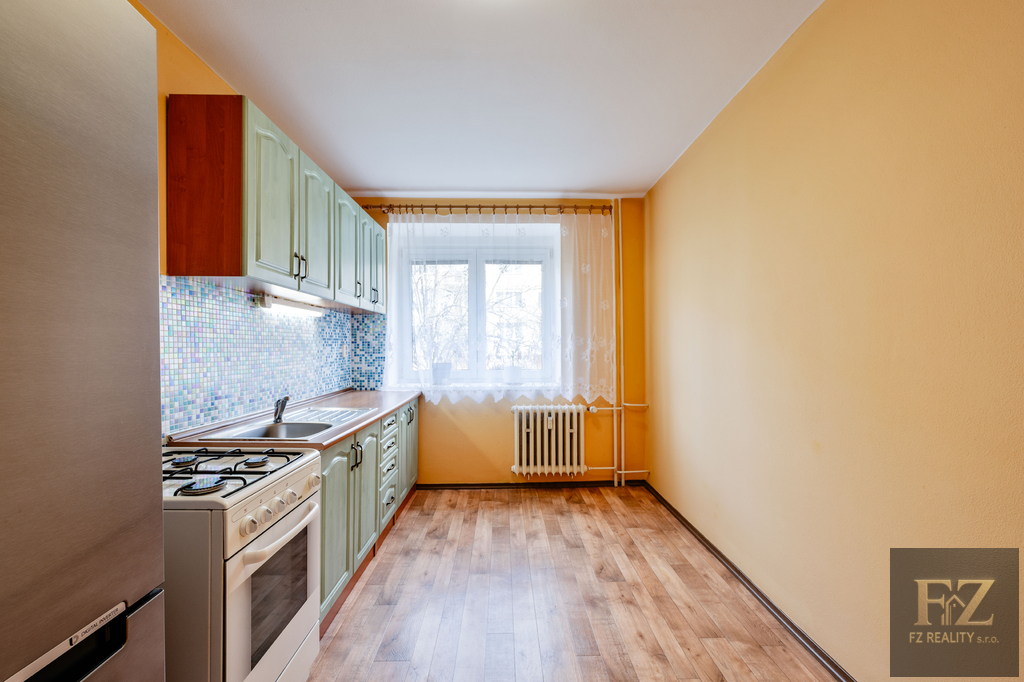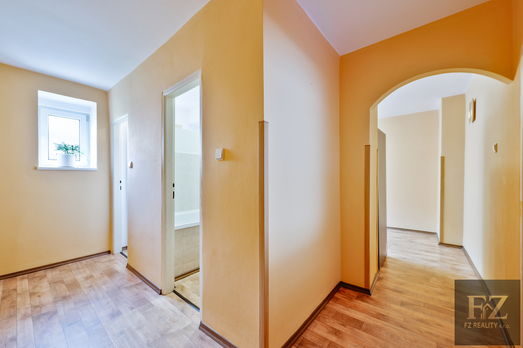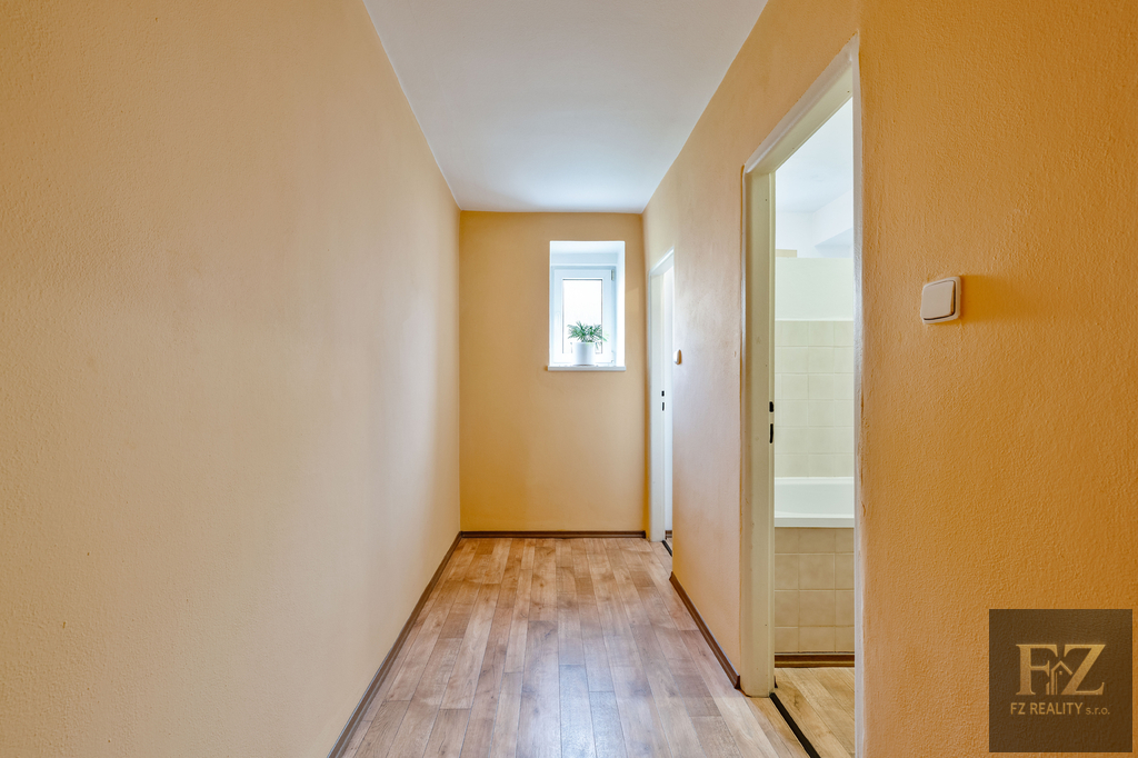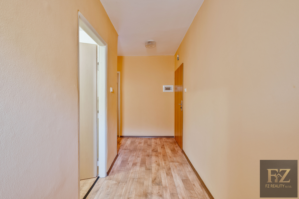 Po vstupu do bytu vás přivítá prostorná předsíň, ze které je vstup do koupelny s vanou a pračkou a také na samostatné WC. Dále se z předsíně vstupuje do obývacího pokoje, na který navazuje další pokoj. Samostatná kuchyň je vybavena plynovým sporákem, lednicí a jídelním koutem.