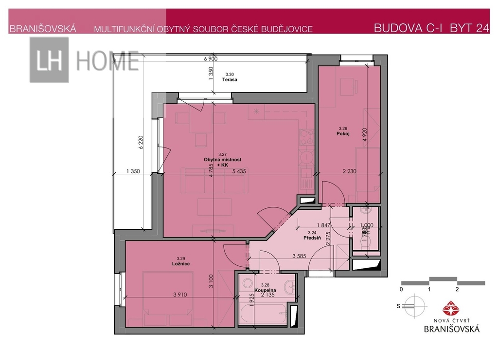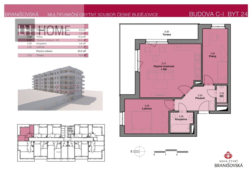 Bytová jednotka 3+kk (62 m²) s terasou (15,90 m²)