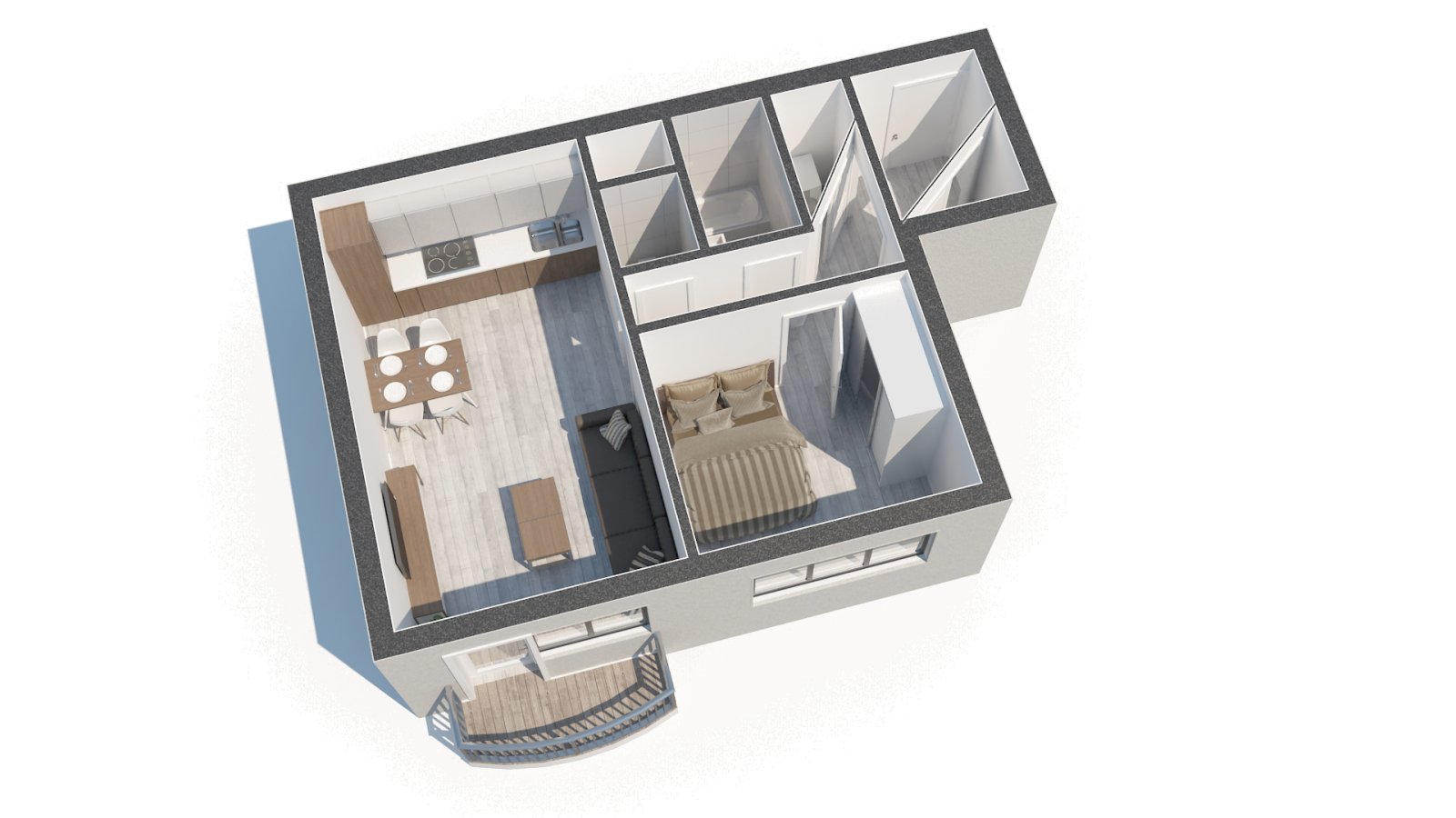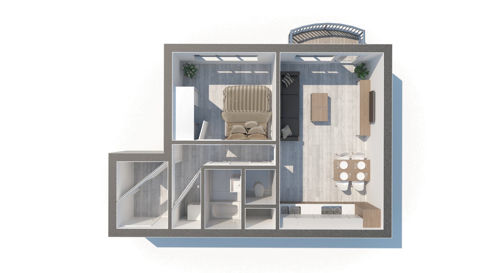 | Dispozice/podlahová plocha: | 2+kk/45 m² |