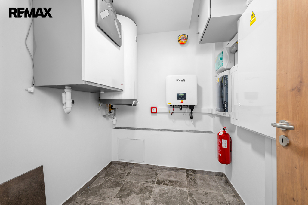 Bonusem této jednotky je její připojení na samostatnou malou fotovoltaickou elektrárnu (4,1 kWp) instalovanou na střeše objektu, která pomůže budoucímu nájemci výrazně snížit účet za elektřinu.