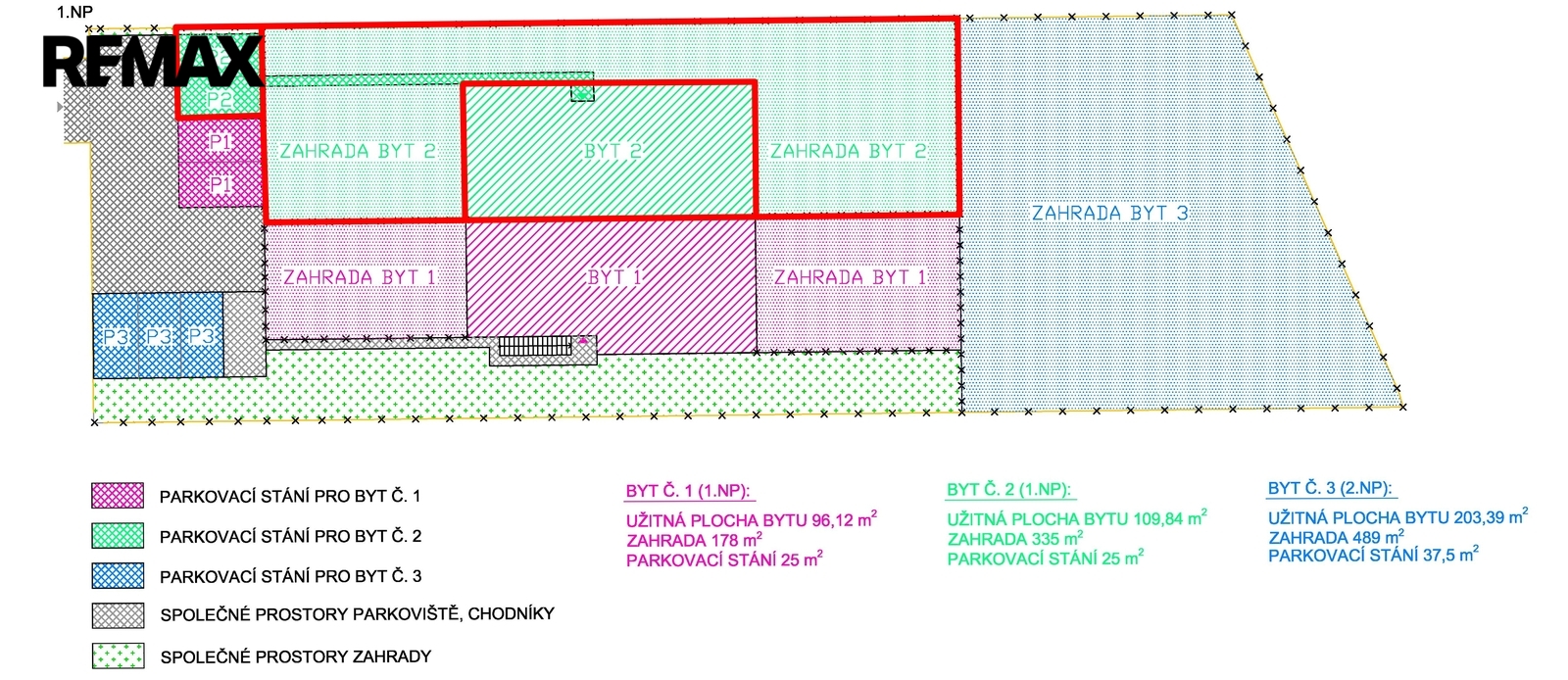 Podnájem nadstandardního nového bytu 4+kk se zahradou a parkovacími místy