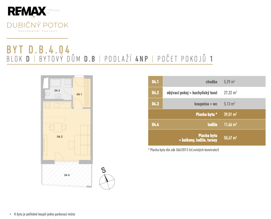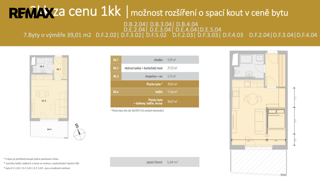 | Dispozice/podlahová plocha: | 1+kk/50 m² |