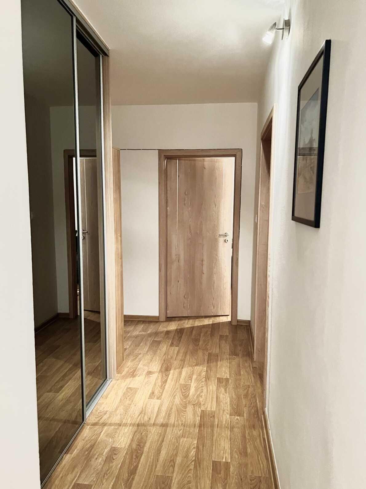 Byt prošel kompletní rekonstrukcí, která zahrnovala novou koupelnu, výměnu všech oken s novými vnitřními žaluzii, nové radiátory v celém bytě, nové dveře a kompletně vyměněná podlaha.