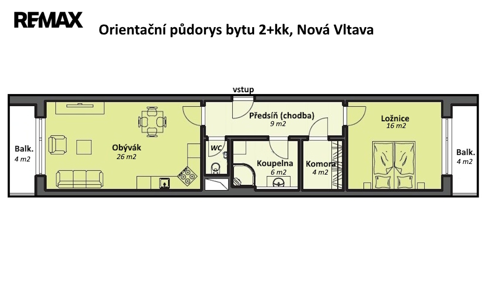 - Dispozice bytu: 2+kk