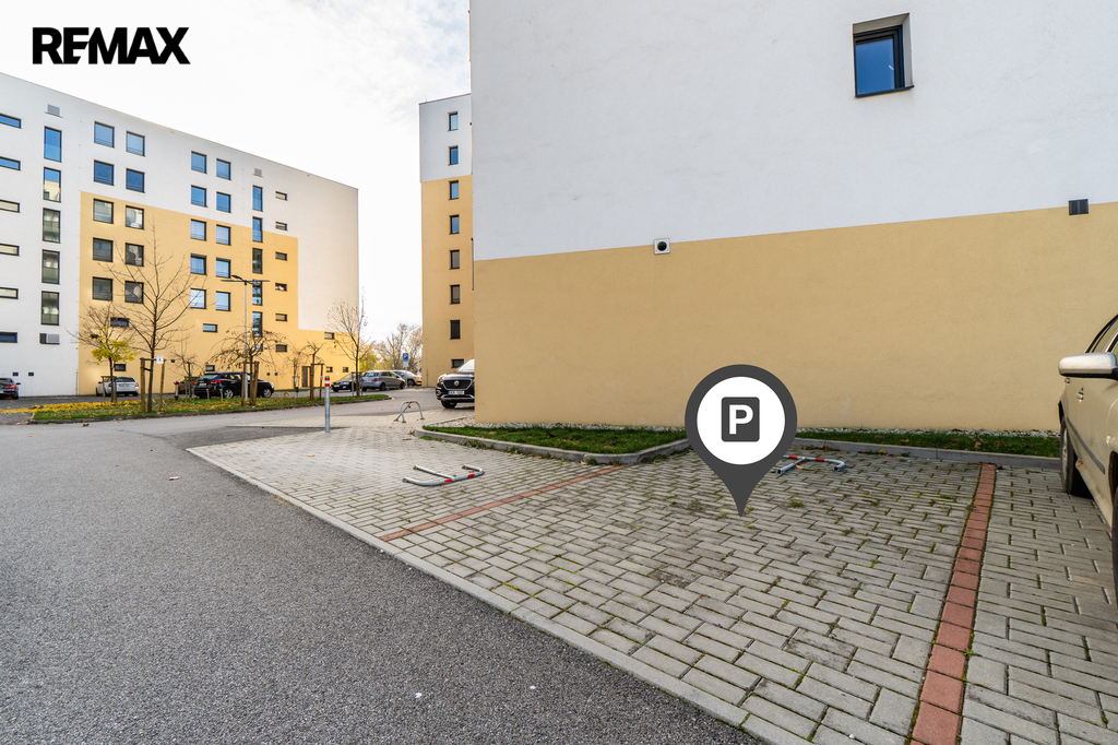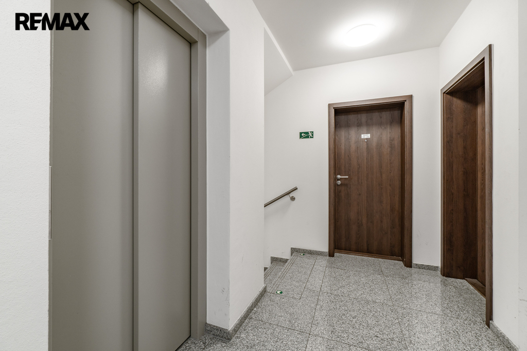 K bytu náleží na stejném patře nadstandardní sklep s denním světlem a plochou necelých 6 m² a také parkovací stání přímo u vchodu do domu. V domě je prostorný výtah.