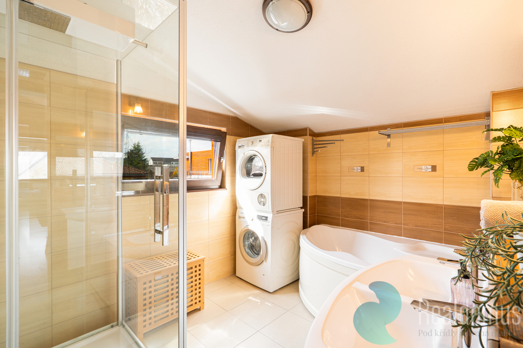 Dům je vytápěn elektrickým kotlem, v místnostech jsou radiátory a v koupelnách topné žebříky. V koupelně v podkroví je instalováno podlahové vytápění. Krbová kamna umístěná v přízemí v hlavní obytné místnosti vytvářejí nejen příjemnou atmosféru, ale poskytují také možnost nezávislého topení, které oceníte především v přechodových obdobích, kdy je příjemné si přitopit, ale není nutno zapínat centrální vytápění. U domu je plynová přípojka, která poskytuje možnost napojení topného systému na tento zdroj vytápění. K dispozici je elektrická přípojka 230 V i 400 V, přičemž 400 V je vyvedeno také do garáže.