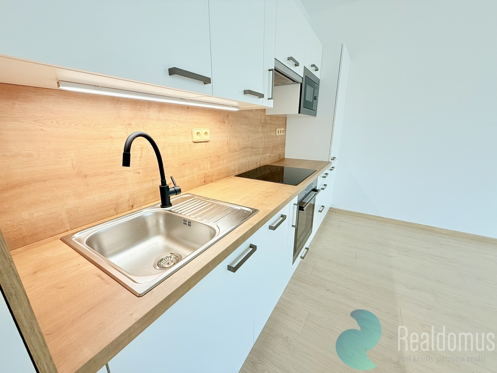 • moderní kuchyňská linka se spotřebiči (myčka, vestavná lednice s mrazákem , mikrovlnná trouba, el. varná deska s troubou, digestoř)