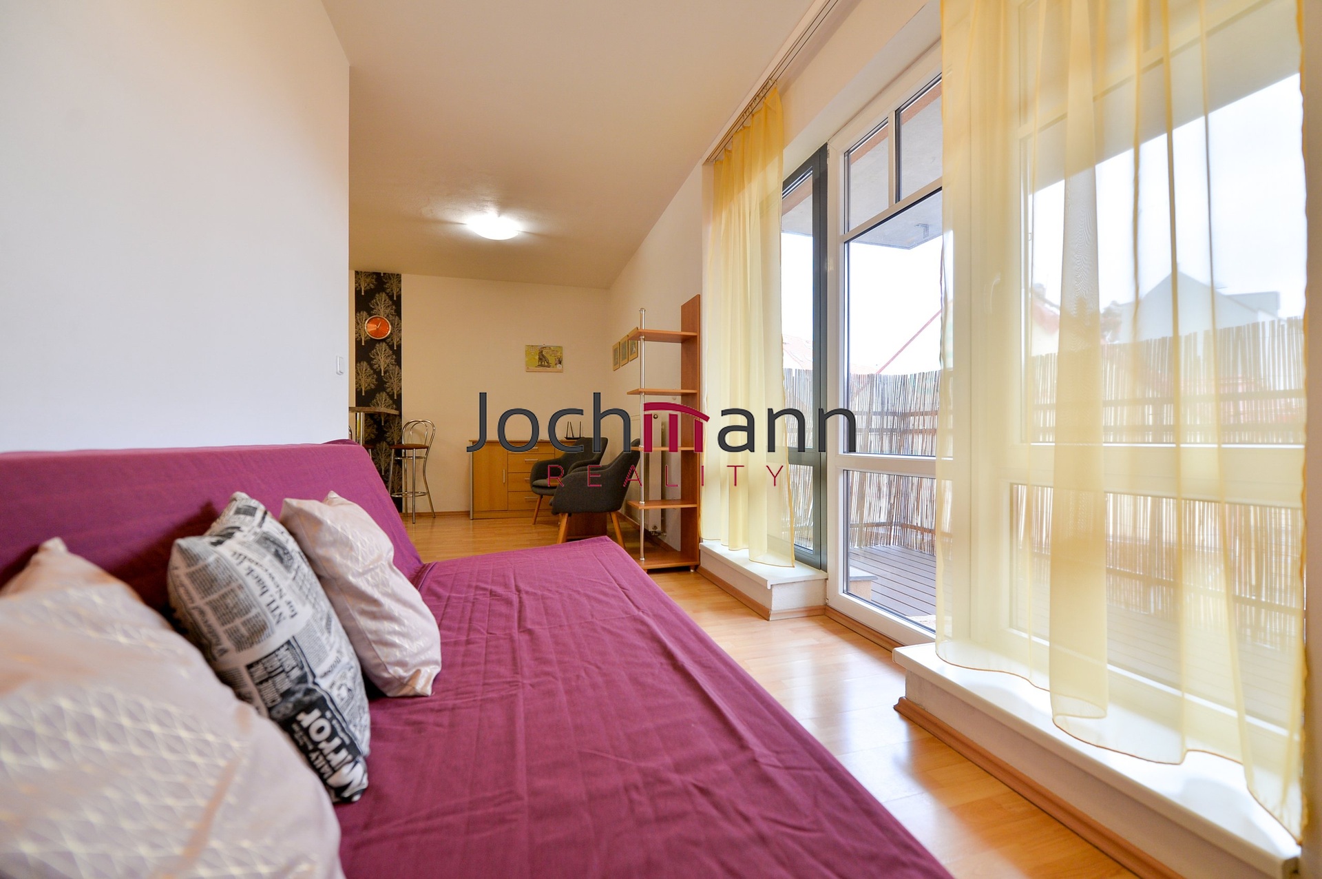 Z hlavní obytné místnosti je následně řešený výstup na prostornou terasu, která je ve svém plném rozsahu orientovaná na východní stranu. Díky tomu se byt nebude při horkých letních dnech zbytečně přehřívat a nájemce si tak bude moc užívat pohodu na terase i v průběhu celého léta. Hlavní přidanou hodnotou tohoto bydlení je zejména kompletní vybavenost nábytkem bez nutnosti dokupování dalších záležitostí. Byt se pronajímá kompletně vybavený bez možnosti stěhování aktuálního vybavení. Vzhledem k velikosti bytu a dispozičnímu řešení se jedná o pohodlné bydlení pro jednotlivce. Byt je k dispozici k nastěhování od 16.02.2026. Více informací u makléře.