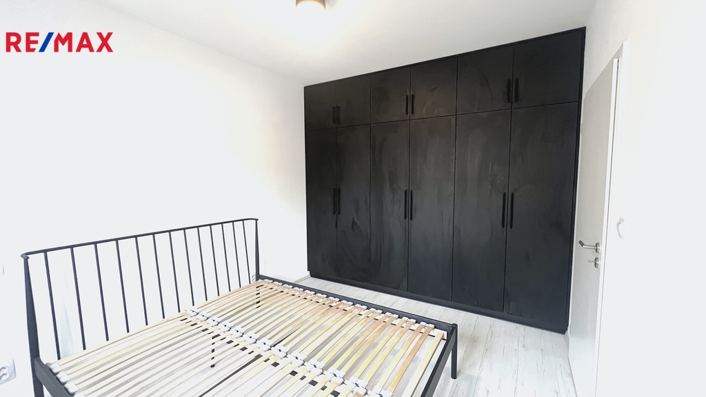 Ložnice poskytuje klid na odpočinek a součástí je velká šatní skříň se spousty úložného prostoru. Po domluvě lze zanechat i postel (viz foto).