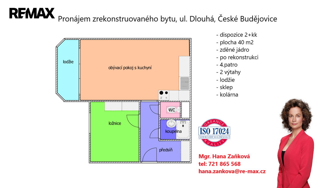 Pronájem bytu 2+kk po rekonstrukci s lodžií, 40 m2, ul. Dlouhá