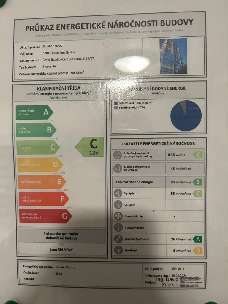 Energetický štítek je vzhledem k čerstvému zateplení a výměně oken s předokenními žaluziemi ve zpracování.